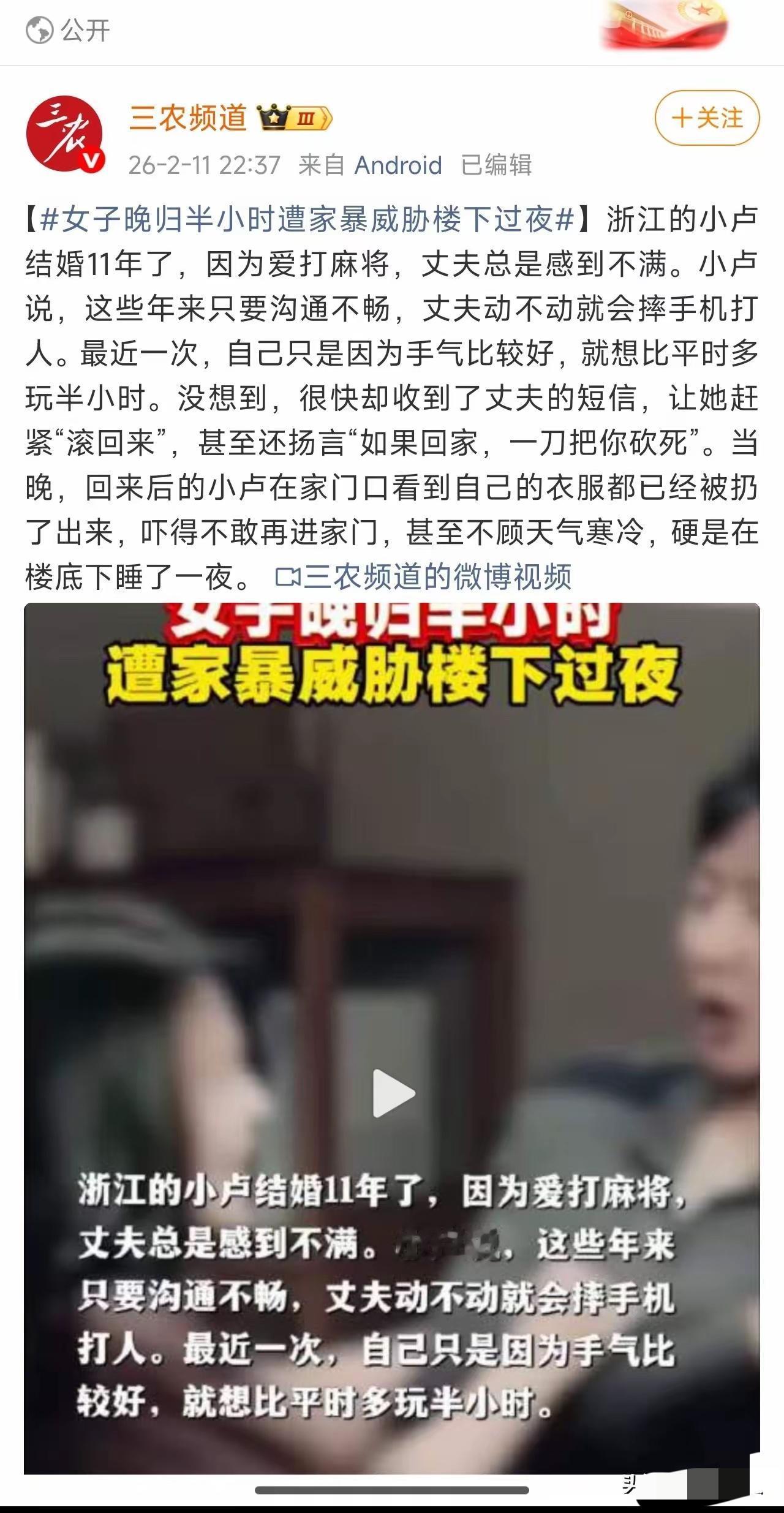 真的太奇葩了,有些媒体的屁股简直歪到没边!事实摆在眼前,却非要颠倒黑白带节奏。 结婚11年,女方把打麻将赌博当成上下班,日夜沉迷不顾家,明明是嗜赌成性的问题,到了某些媒体嘴里,居然变成“晚归半小时被老公家暴威胁、楼下过夜”的可怜人。 我就想问一句,同样的事换个性别呢?如果一个男人结婚11年天天赌博不回家,媒体早就骂翻天了,什么不负责任、毁家败家的词全用上,绝对不会有半点同情。 这种双标真的让人恶心,为了流量刻意歪曲事实,把过错方包装成受害者,不仅不尊重真相,还在挑拨男女对立。婚姻里的错就是错,赌博从来都不该被洗白,更不该用性别滤镜去掩盖事实。 真相不该被选择性失明,你们觉得这种媒体双标,是不是太过分了?