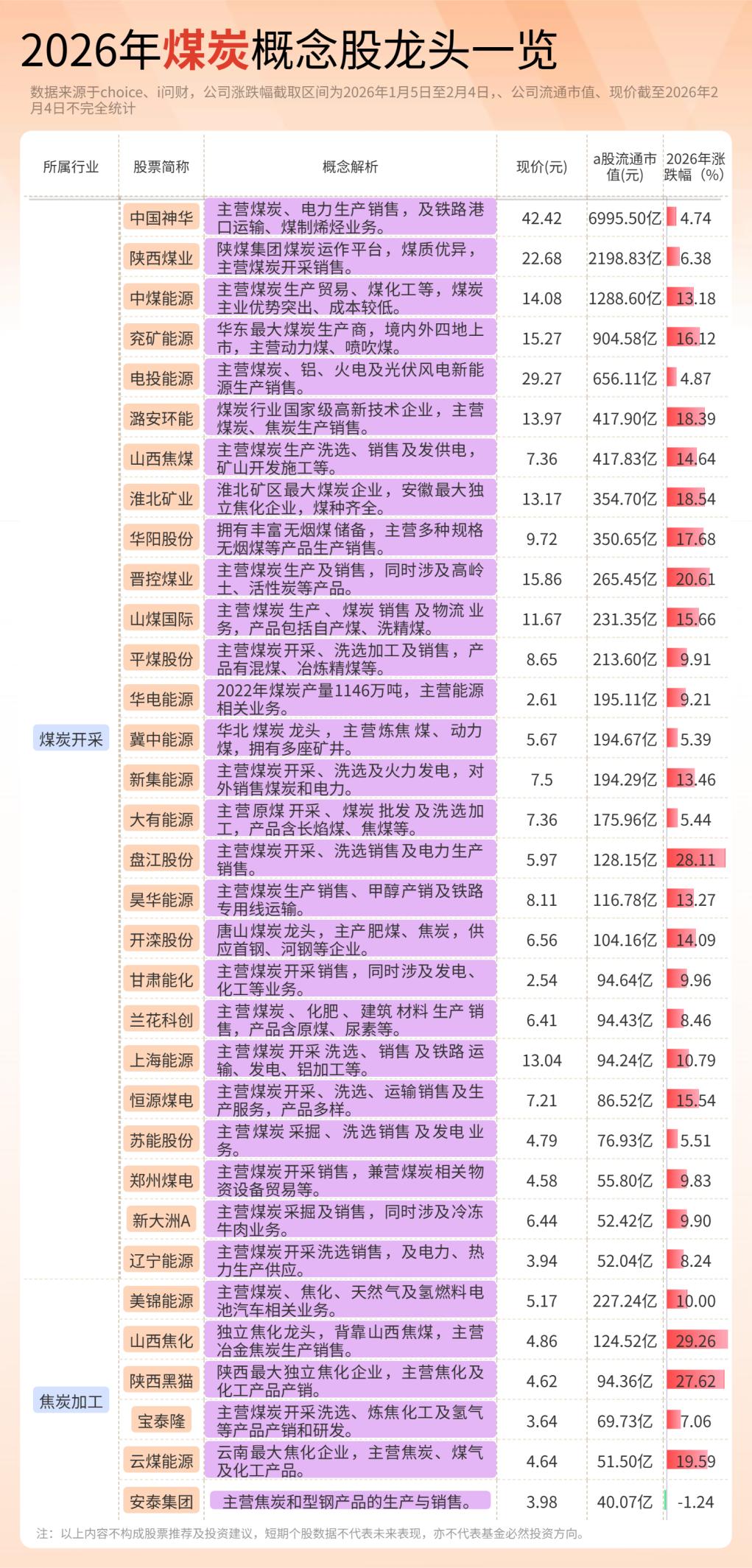 2026年煤炭概念股龙头一览表(建议收藏) (向右滑动图片查看完整名单) 煤炭