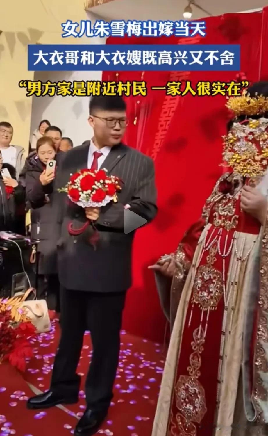 朱之文爱女新婚大喜,看着他们两口子非常高兴,姑爷一看也是非常老实,据说男方也是附近的实在的人,新郎一表人才,文质彬彬。看大衣哥表情非常满意。就是朱雪梅体重有点房,她减肥效果不怎么样,以前说健身,减肥瘦下来了。一看到本人,还是有点胖。网友说,她是富态,旺夫。 大衣哥真是人生赢家,儿女都有个好归宿,孙子朱顺发也有了,后继有人。
