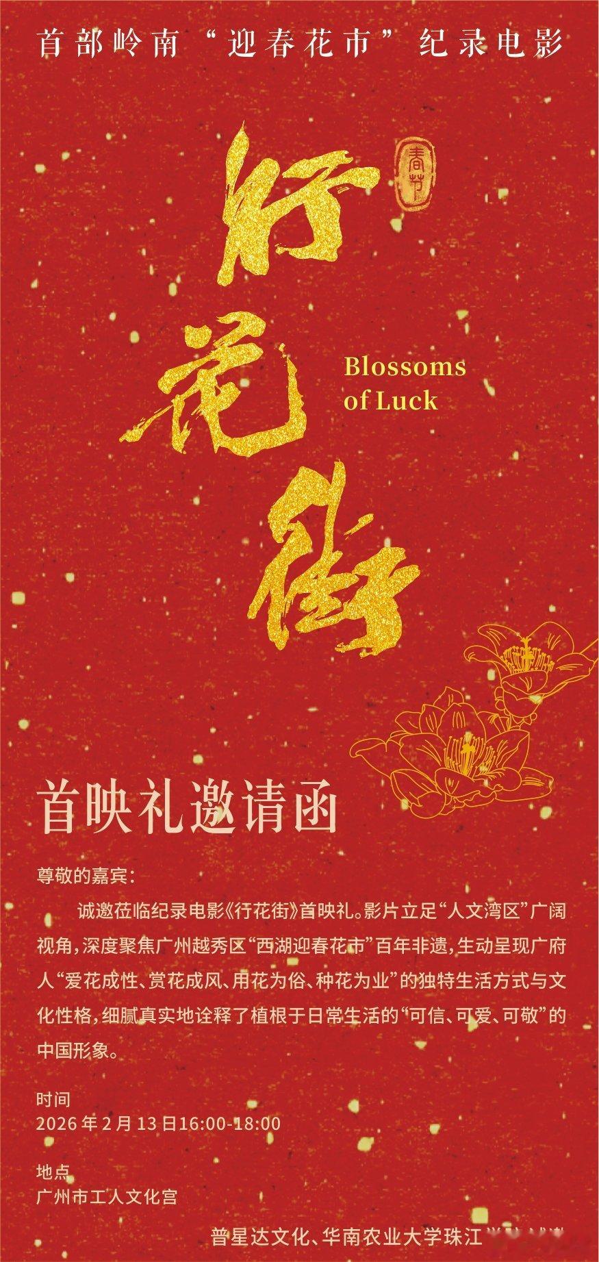 今天专程来睇《行花街》纪录电影广州首映,看完心里暖乎乎,感触好多!以后再去西湖路越秀花市,一定会有不一样的心情与体验🌺作为首部聚焦“行花街”非遗的纪录电影,镜头全对准我们最熟悉的越秀西湖花市。拍尽花农的匠心、花商的坚守,还有环卫、警察等城市守护者的付出,满满都是地道广府年味。2024年,「春节——中国人庆祝传统新年的社会实践」入选联合国教科文组织人类非物质文化遗产代表作名录,这份属于中华民族的文化传承,得到了世界级认可。《行花街》也正是在这样的背景下诞生,用影像向世界讲好岭南新春故事。重新装修后的榕泉影院超有韵味,老广情怀拉满。在这看《行花街》首映,真的是独属于老广的浪漫✨行花街广式生活西湖路花市 广州·北京路文化旅游区