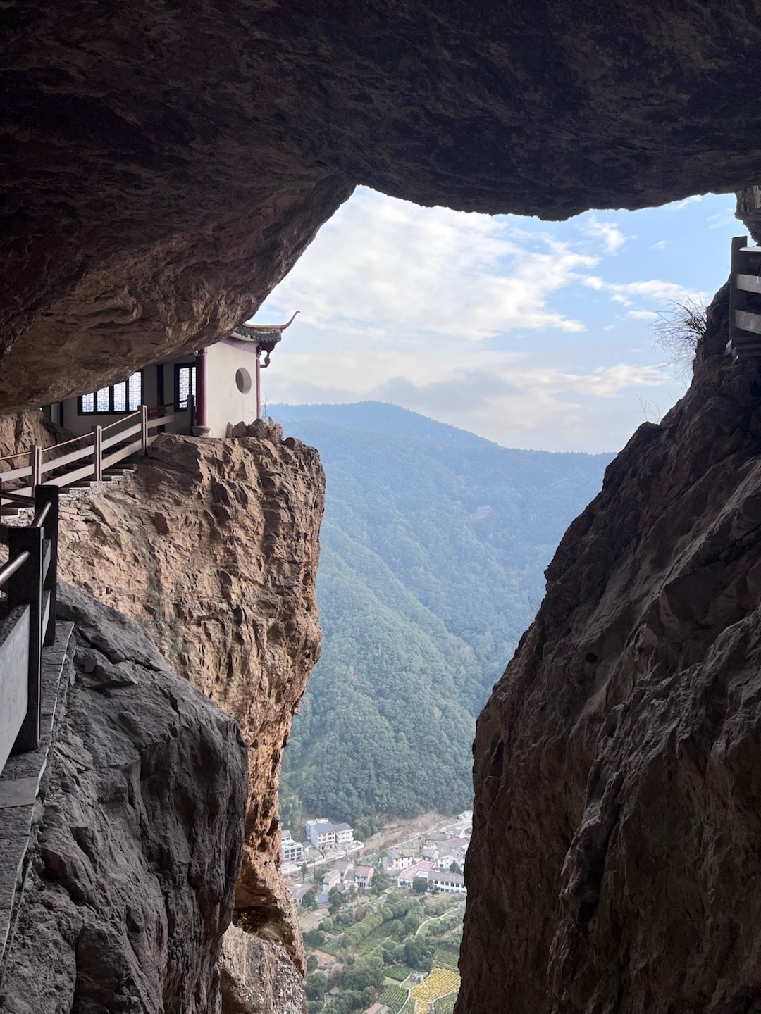 一从雁荡山站下车,我的眼里就装满了山。这两天住在响岭头村,在村子中间,原地360度转一圈,几乎没有看不见山的时候,雁荡就是这样一重山叠着一重山。 乐清最近天气不错,平均温度都在接近20度,给了我两个大晴天,走进山看,山的崖壁都在闪光。晴雁荡真是美,唯一的遗憾是没安排好时间,飞拉达去不了了。 我站在灵岩站等车,远远的山的剪影替代了地平线,这个时候真有点想我的山城了。