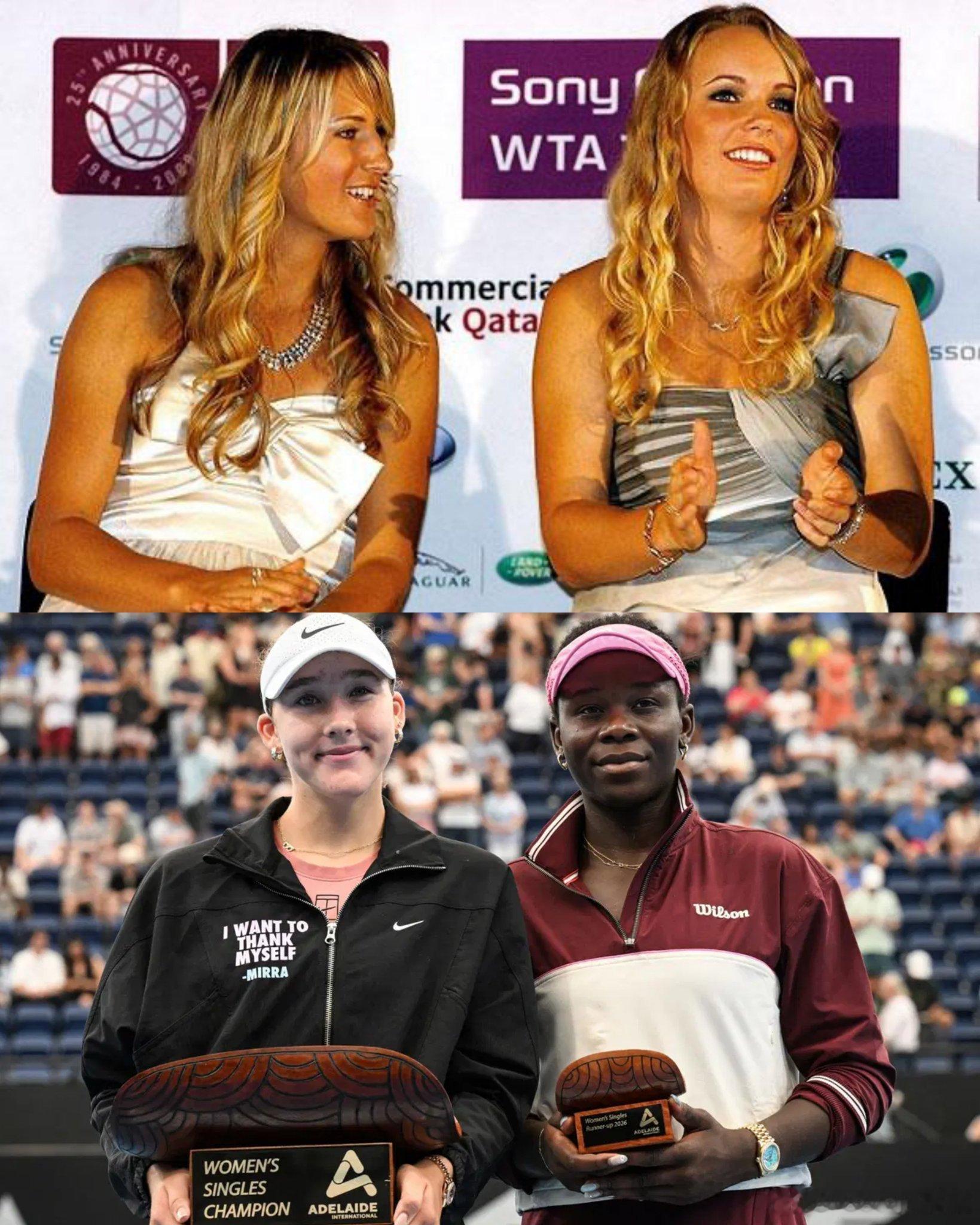 下周,17年来第一次将有两位U20球员排名女单TOP10:2009的阿扎伦卡🇧🇾和沃兹尼亚奇🇩🇰2026的安德列娃🇷🇺和姆博科🇨🇦姆博科晋级多哈站决赛