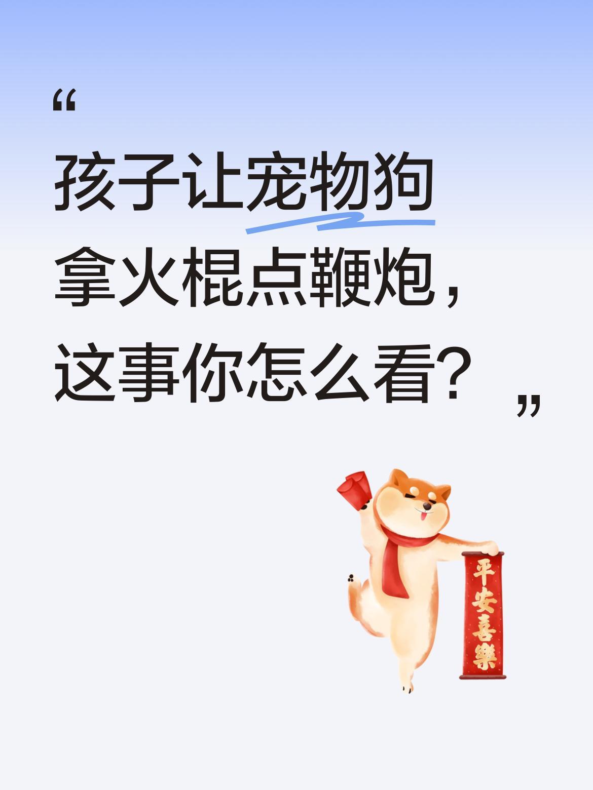 孩子让宠物狗拿火棍点鞭炮,这事你怎么看? 2月10日,有视频显示孩子指挥宠物狗"拿着"火棍去点鞭炮,还提醒"吵了就跑"。没想到狗狗似乎听懂了指令,真的上前尝试。这种让宠物接触危险物品的行为,既可能导致宠物受伤,也存在安全隐患。家长是否应该更注意孩子与宠物互动时的安全引导?你觉得这样的场景合适吗?