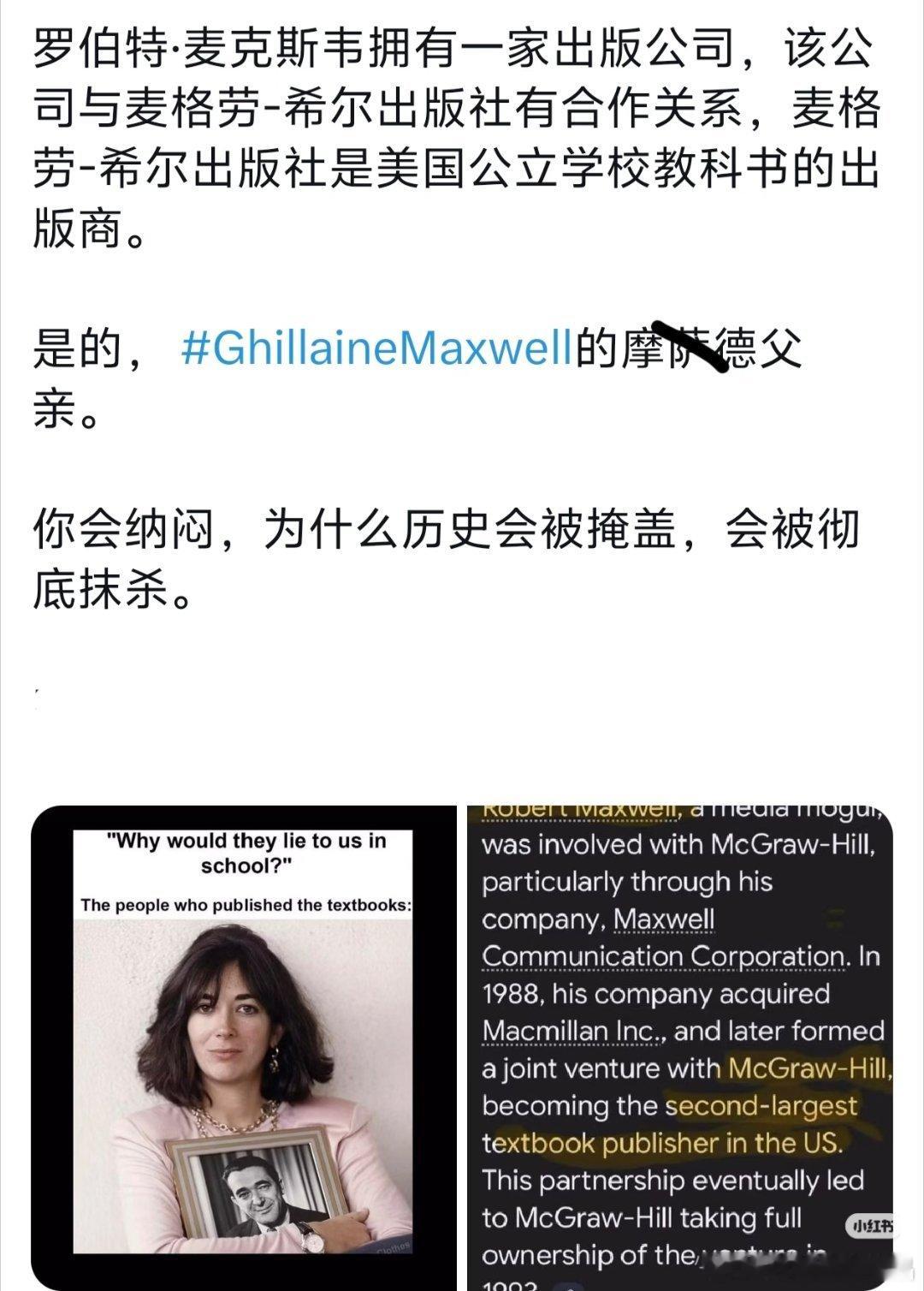 爱泼斯坦的女朋友,也是恶魔岛的副主理人的父亲买下了全世界最大的教科书出版公司,爱泼斯坦据说是他女朋友父亲指定的接班人,拉皮条只是爱泼斯坦最不重要的事情之一。