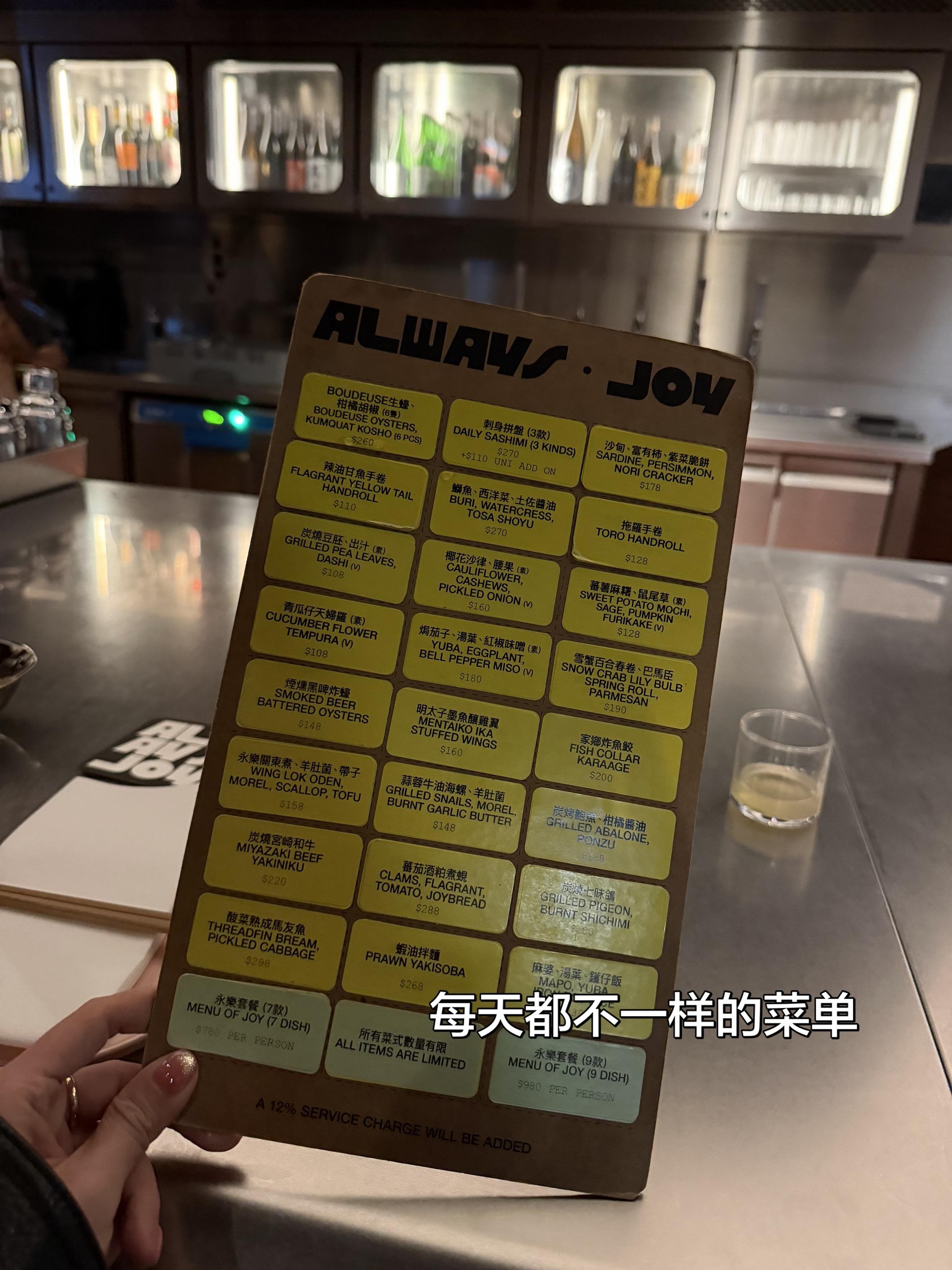 Lady night 总是那么有趣~ 原Ronin团队新店Always Joy,新店有更宽敞的开放性空间,在中环Yard Bird旁边,两家都属于新派日系菜,据说菜单更换频率快到每天都不一样!虽说是日本菜,但新派烹饪组合,新颖又好吃!餐厅氛围非常Chill,服务员热情的程度恰到好处,是可以吃饱也可以喝开心的一家Chill的小酒馆!
