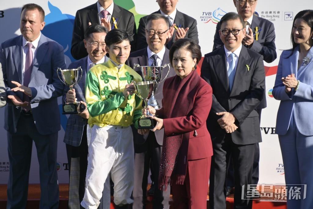乐易玲获爱将张振朗陪伴在另一边,高层乐易玲则有爱将、视帝张振朗陪伴在侧,二人在栏边观赛时相谈甚欢。不过,站在旁边的上位小花、《东张西望》女神邓凯文虽然全程紧贴,但似乎未获乐小姐太多关注,两人之间几乎零互动,场面略显尴尬。