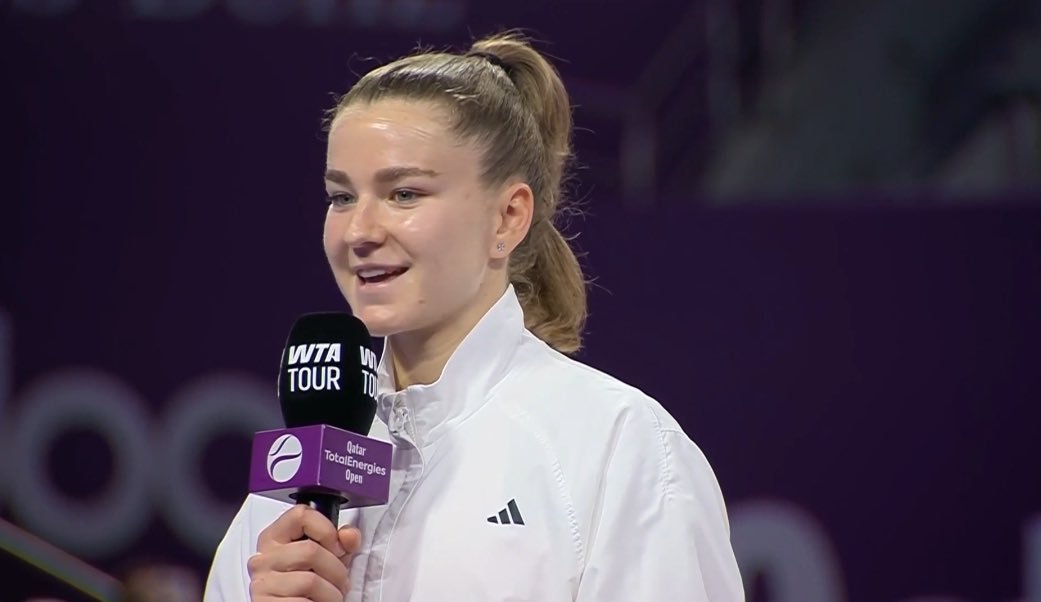 “我已经很久没有赢得冠军了,能够再次体验到那种感觉,尤其是在多哈重温胜利的喜悦,真是太棒了,这感觉太不可思议了,非常感谢,我也想祝贺维多利亚,如果我没记错的话,你还是个十几岁的孩子,你的比赛表现得非常成熟,而且发挥得非常出色,这周对你来说真是太棒了,祝贺你!我相信你未来还会赢得很多冠军。无论你的球队在哪里,都祝贺你们,祝你们在接下来的赛季中好运!”