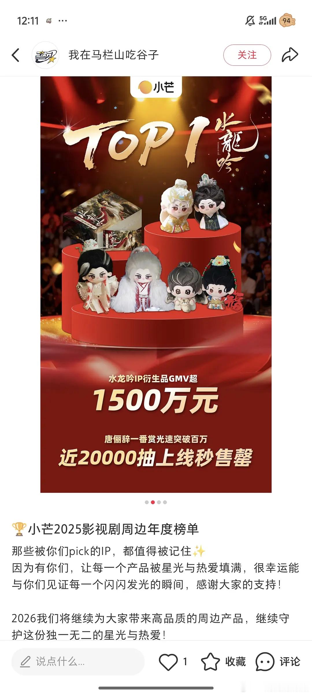 恭喜水龙吟小芒单平台销量破1500w,造点店铺销量破700w,仅官方战报已破2200w!这个数据太牛了!罗云熙水龙吟