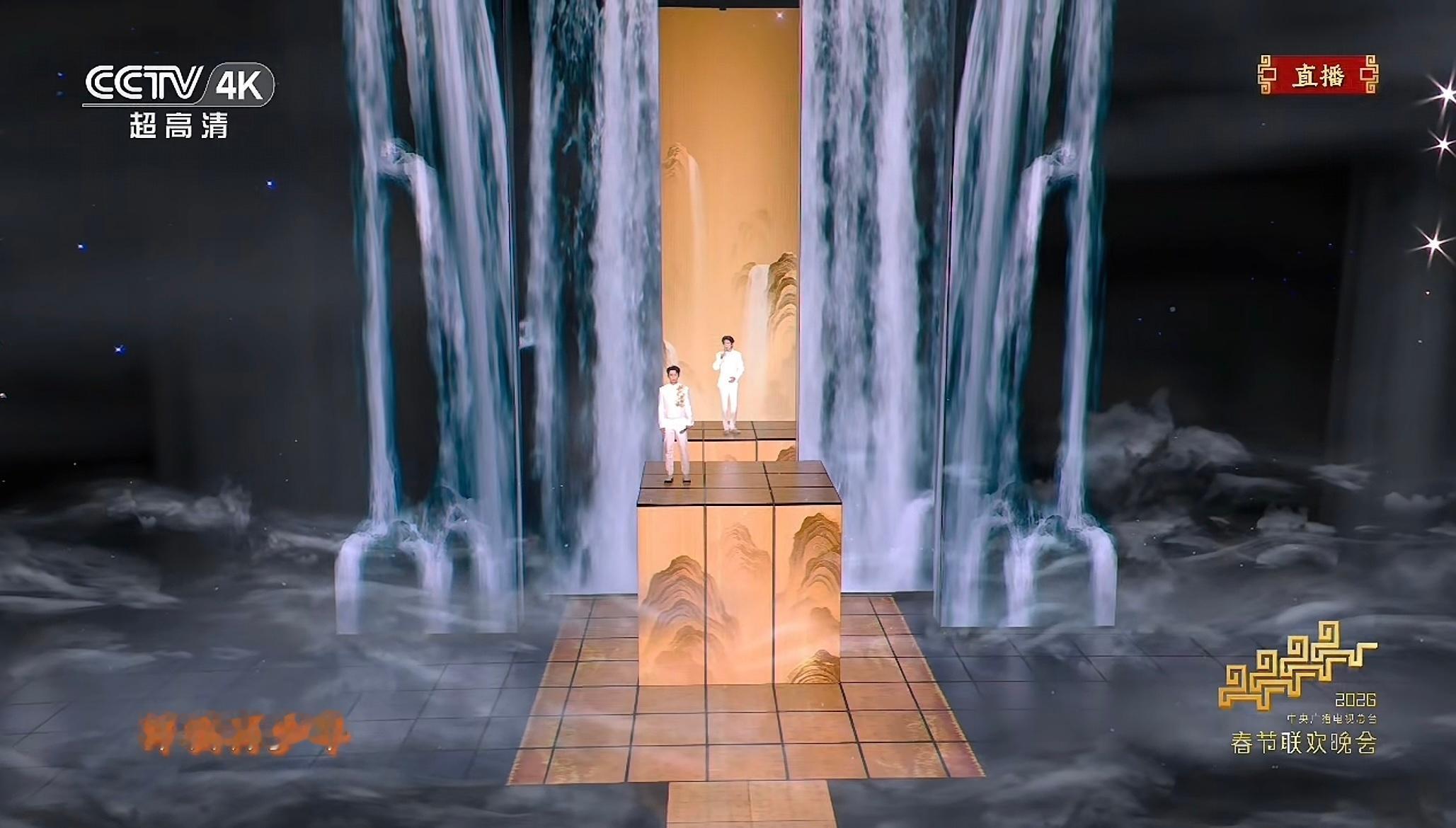 春晚段子大考这舞台效果太绝了,仿佛站在瀑布仙境里唱歌春晚