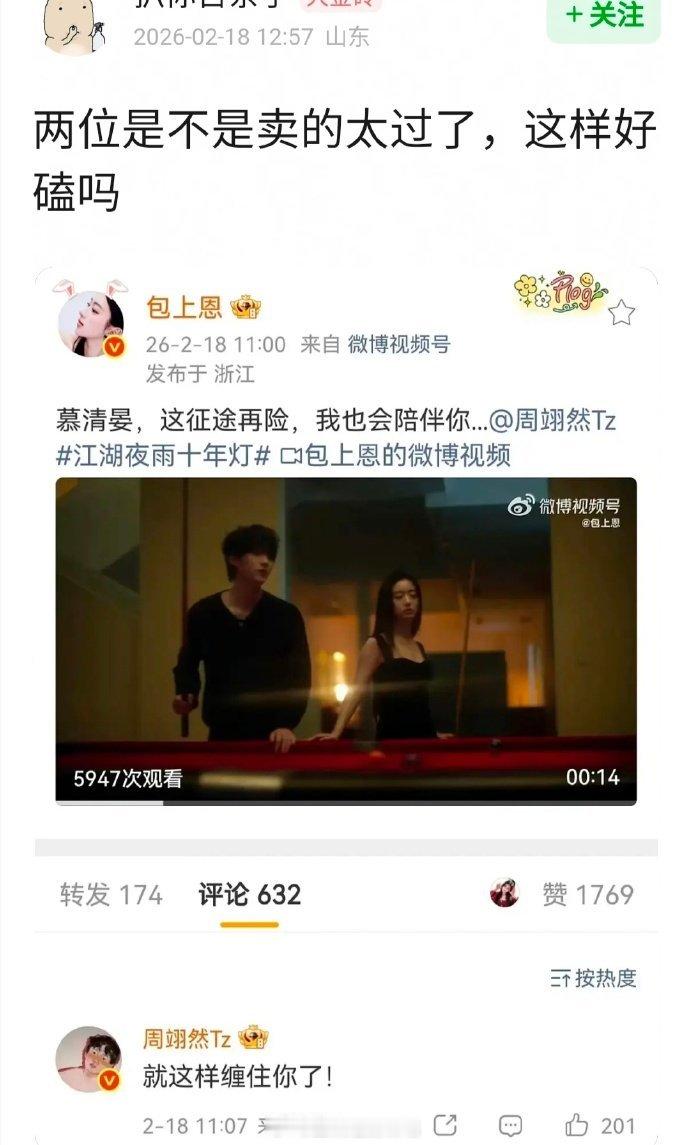 网友问周翊然和包上恩是不是麦的太过了?感觉有点着急了,这都还没播呢…这样好磕吗