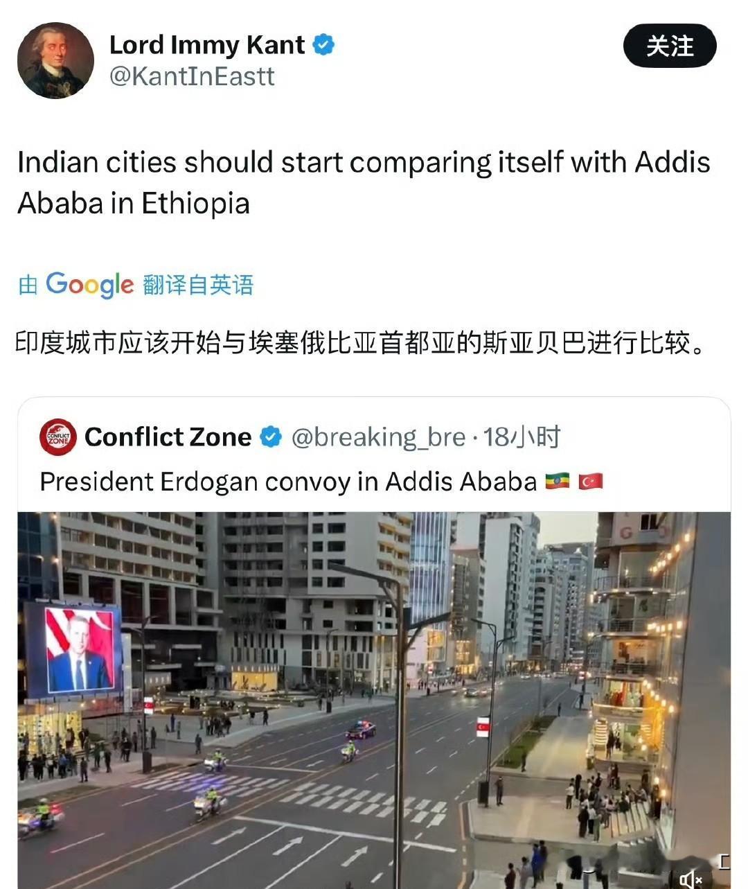 外网上埃尔多安访问埃塞俄比亚首都亚的斯亚贝巴的视频火了,网友发帖说埃塞俄比亚比印度更干净更发达,这句话再次刺痛印度人!