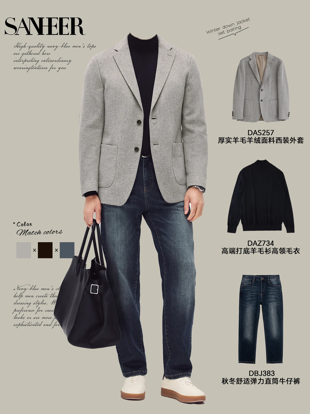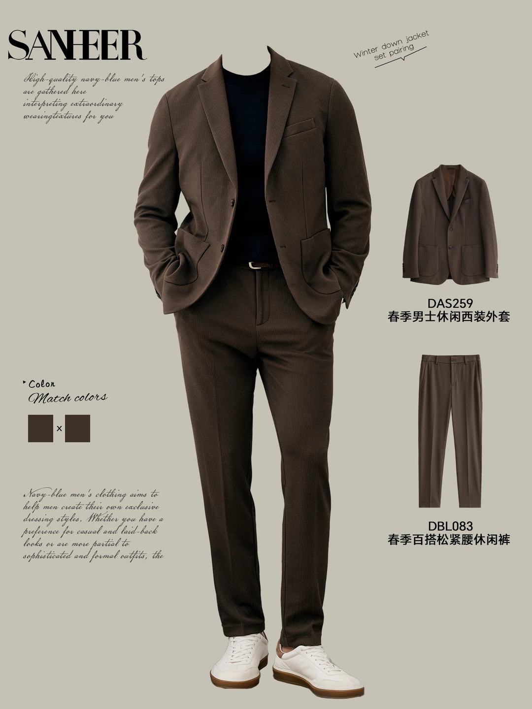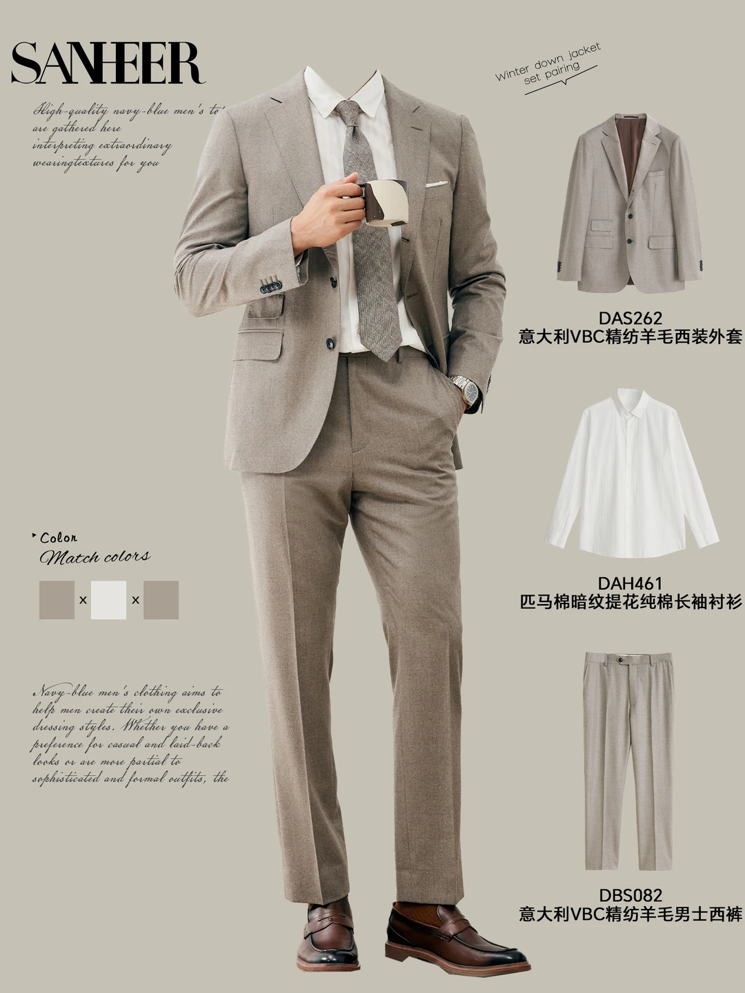 SANHEER 这套休闲西装,把 “体面” 和 “舒服” 平衡得刚刚好。 浅卡其色羊毛西装外套,细腻肌理自带柔光滤镜,告别刻板正装感 内搭亨利领羊毛衫,软糯亲肤,单穿也能撑起气场 搭配米白休闲长裤,利落剪裁藏肉显瘦,小白鞋加持,通勤 / 见客户都得体