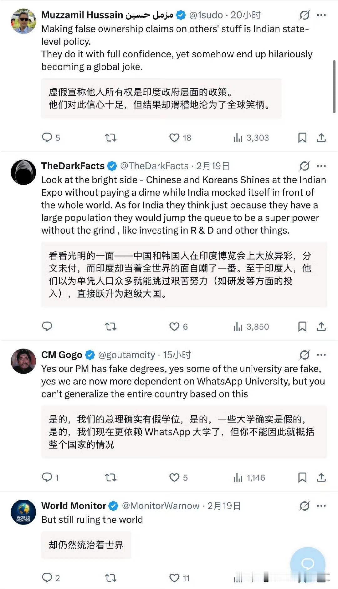 韩国人又和印度人吵起来了 原因是之前印度有大学用宇树的机器人说是自己研发,被人戳破后,韩国人发帖说印度的无人机用的是韩国的,就这样韩国个印度又引发了口水仗, 新年假期又增加了乐趣!