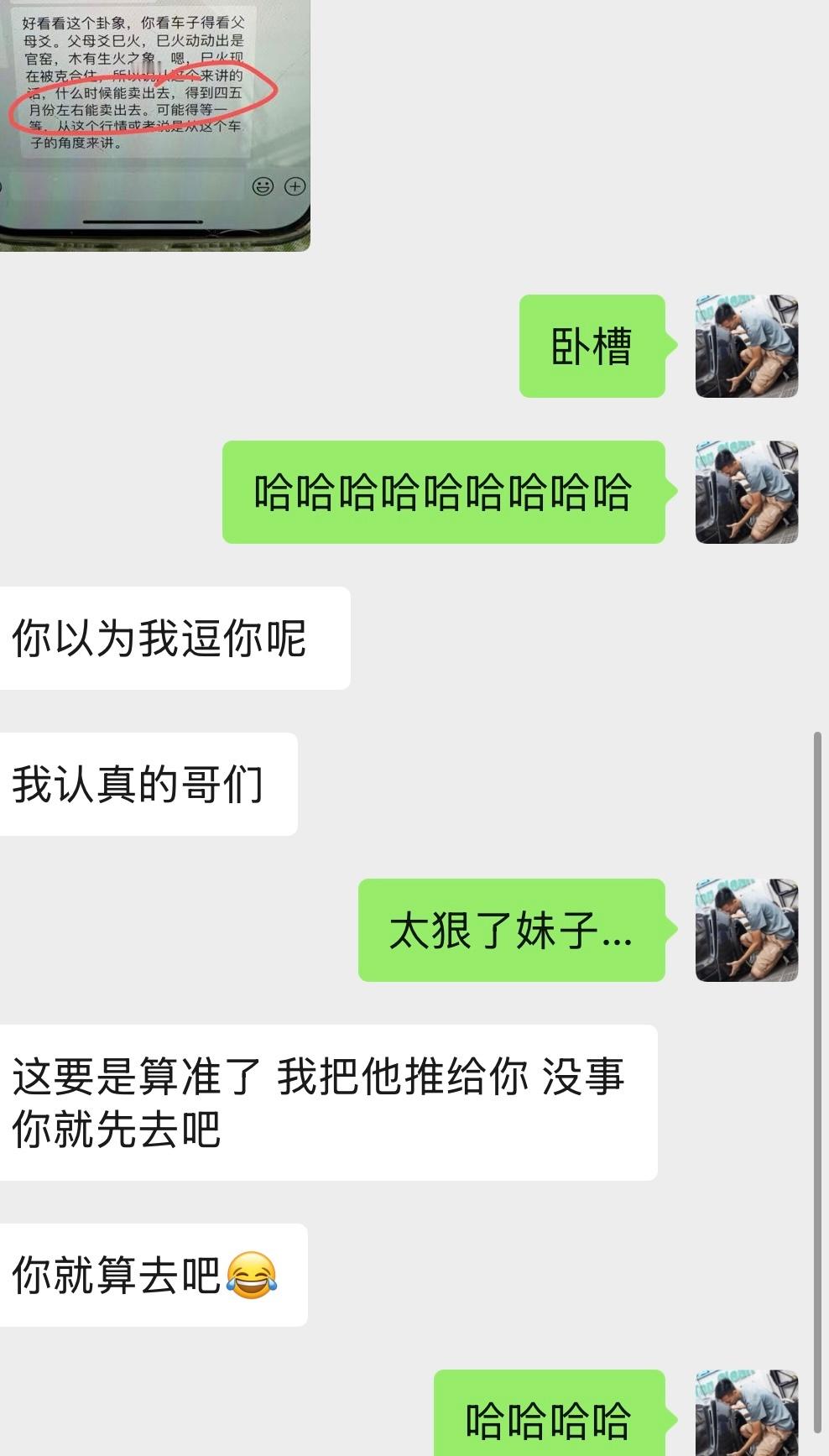 客户在店里寄售个车 我说要不你直接卖我吧她说不行你给太低 我说你要太高了这样肯定很久才能遇到义薄云天的大哥她说你等我给我车算一卦啊…我以为开玩笑…大姐真给自己车算一卦说四五月才能卖掉搞得我想给Rs6也算算啥时候能卖掉