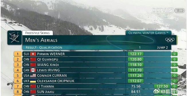 齐广璞率中国4人晋级决赛米兰冬奥会自由式滑雪男子空中技巧预赛收官!齐广璞、王心迪首轮稳定发挥直通决赛;李天马、孙佳旭顶住压力,第二跳分别拿下127.50分、118.55分,强势逆袭!中国队四人全员晋级今晚决赛!老将稳、小将勇,空中天团,决赛冲金全民聊冬奥体育大拜年