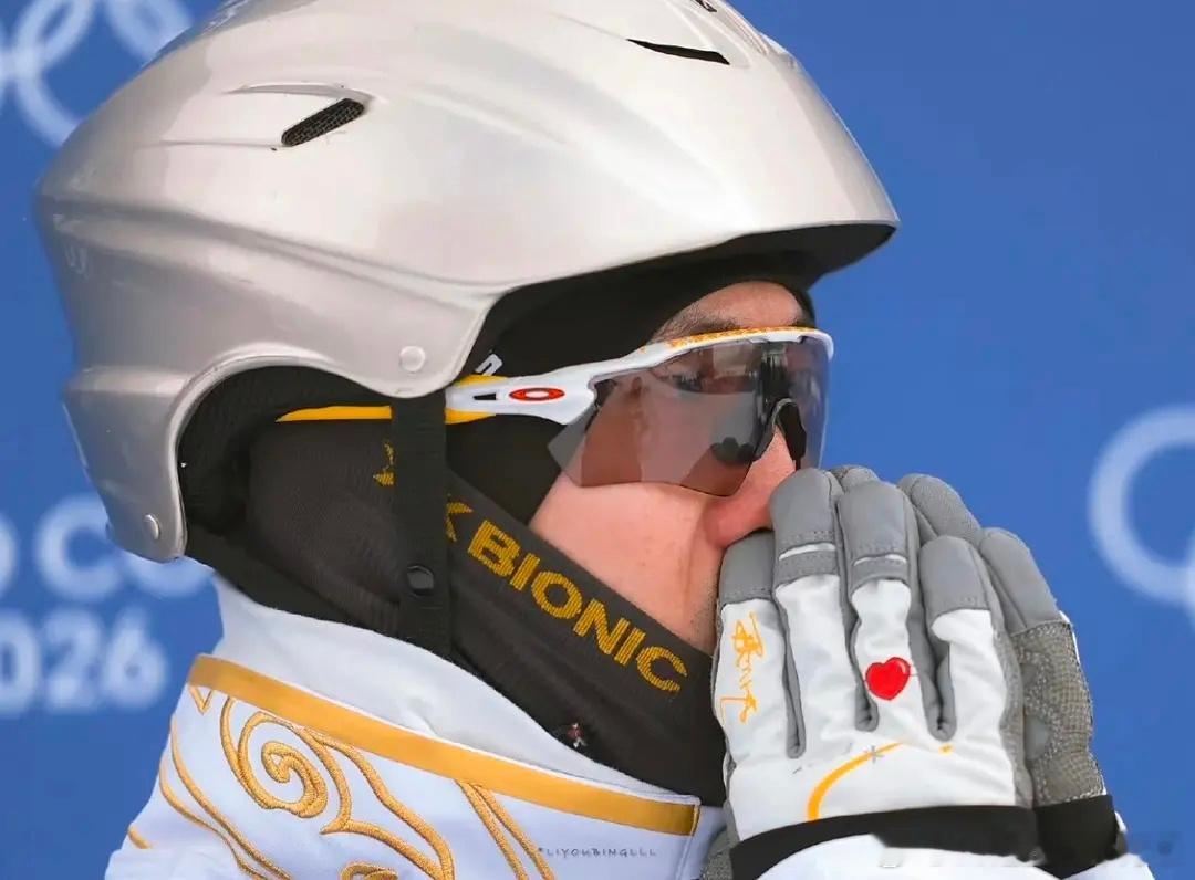 王心迪徐梦桃 金牌夫妻王心迪的手套上有一个🍑桃子,另一只是爱心💍。他赛后赛前都亲吻了自己的手套太甜了吧让苏翊鸣替我随500