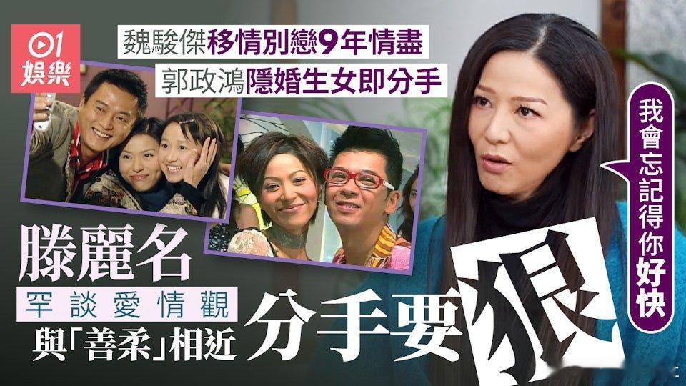 上月(1月20日)正式踏入50歲的滕麗名,近日接受方健儀的YouTube頻道節目訪問,透露現實中的感情觀就像她在《尋秦記》中飾演的女豪俠「善柔」一樣瀟灑,更罕有大談過去兩段舊情。回顧滕麗名的情路可謂波折重重,曾被形容為「渣男磁鐵」,婚前兩段情均疑因男方不忠而分手。最為人熟知的是與魏駿傑的9年情,因對方移情別戀;隨後與郭政鴻傳出地下情,卻因男方被爆隱婚生女而分手。但滕麗名灑脫面對,最終於2013年結婚,獲得幸福。