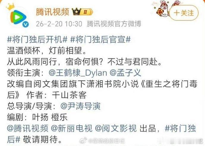 《将门毒后》明天先单宣王鹤棣,过十分钟再宣孟子义网友说孟子义接《将门毒后》,做王