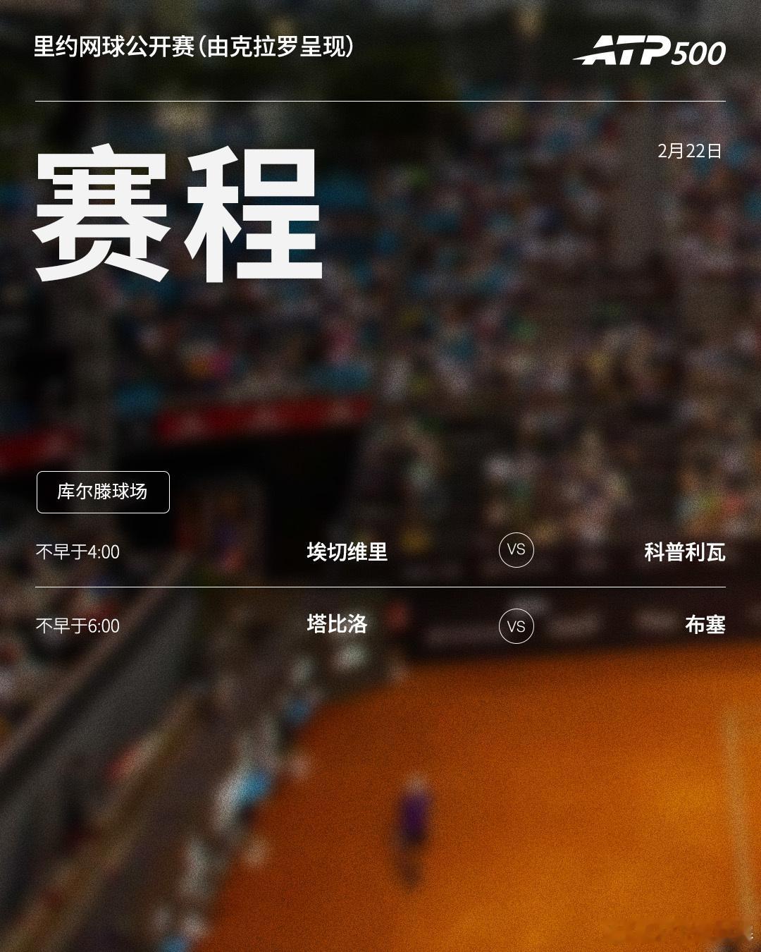 ⭕️ ATP500里约网球公开赛(由克拉罗呈现)📍巴西·里约🎾展开半决赛争夺,塔比洛、埃切维里等出战。