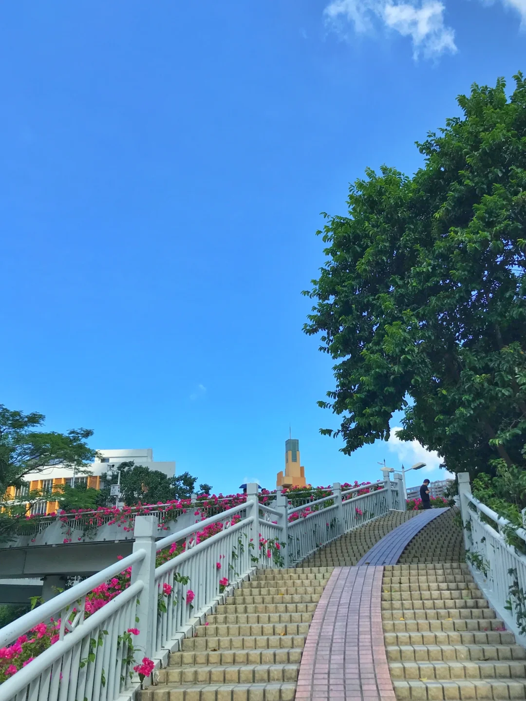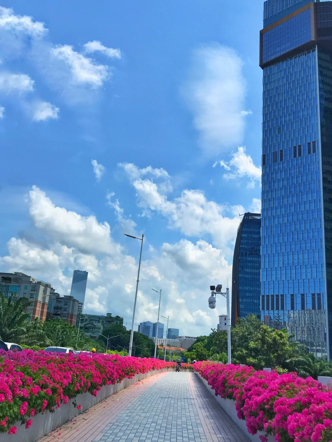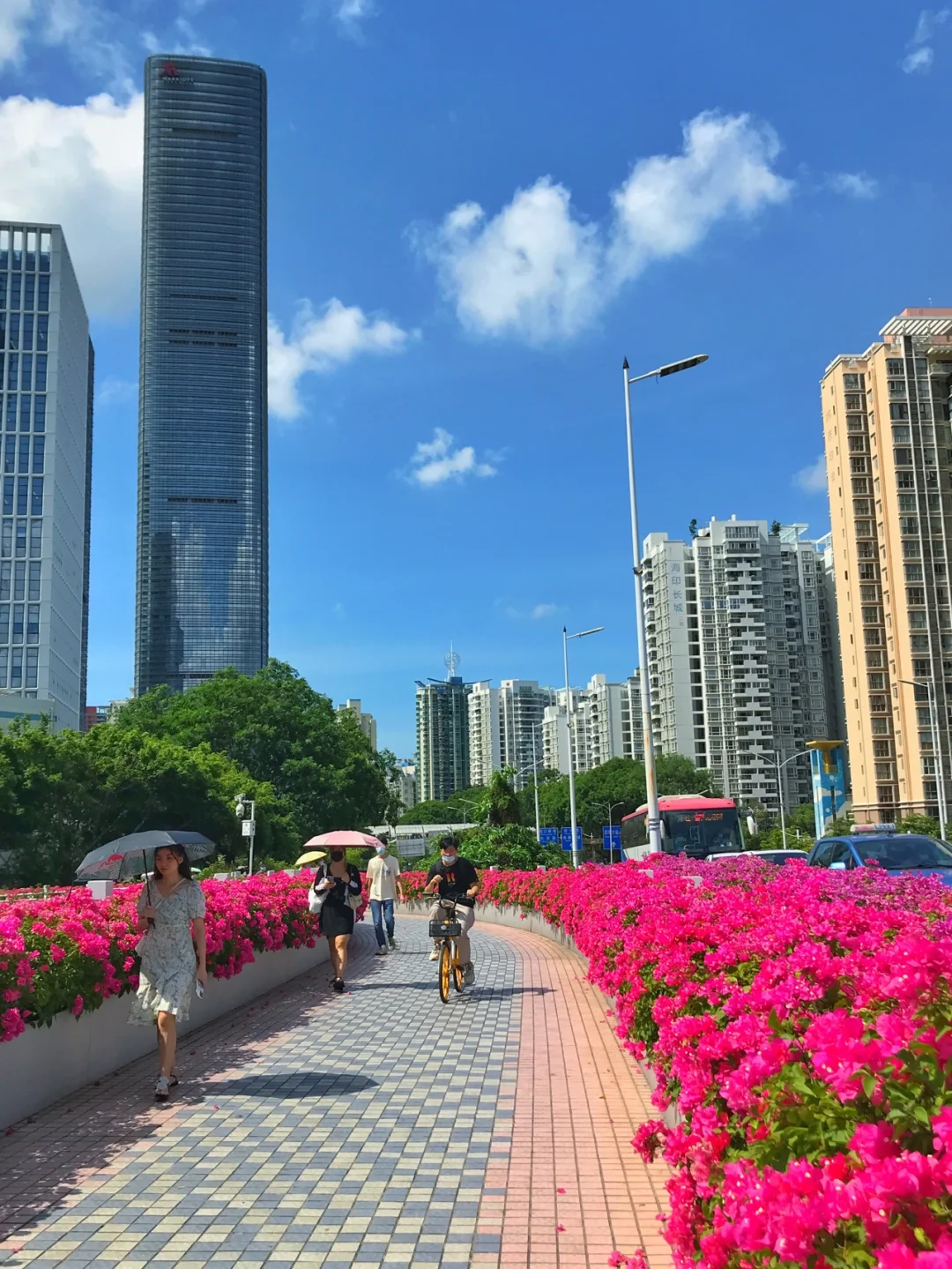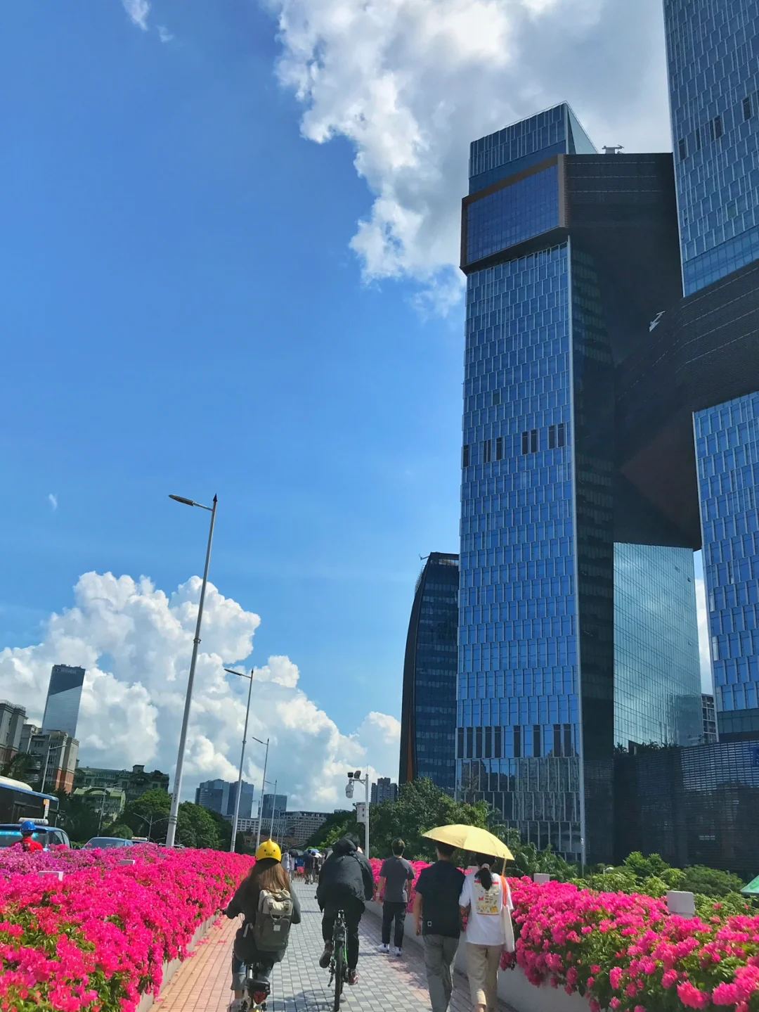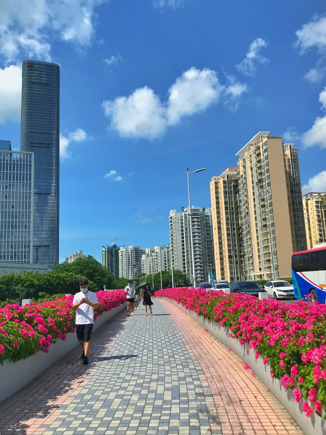 8月2日,深圳腾讯滨海大厦旁的人行天桥,勒杜鹃花盛开,一股春天的气息。