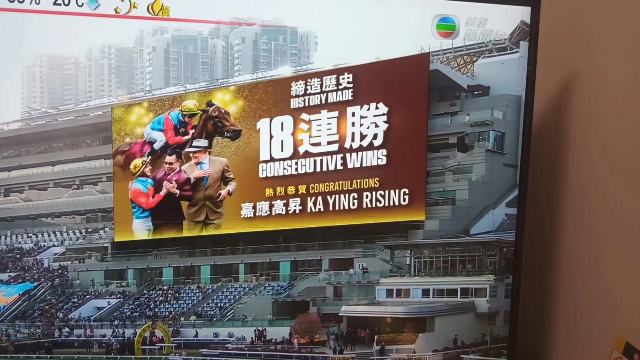 享誉世界马坛的“嘉应高升”今午以破记录时间1分19秒点36率先三个半马位完成1,400米赛程,缔造18场连胜辉煌历史,果然不负世界短途马王称号,牠是属于中国香港的!祝贺香港诞生了一匹短途程所向披靡的马王!悠悠香港赛马史,今天业已达至纯种马速度竞赛高水平地区,全球赛马业界公认,争相派遣顶级马匹来港参赛足以证明!