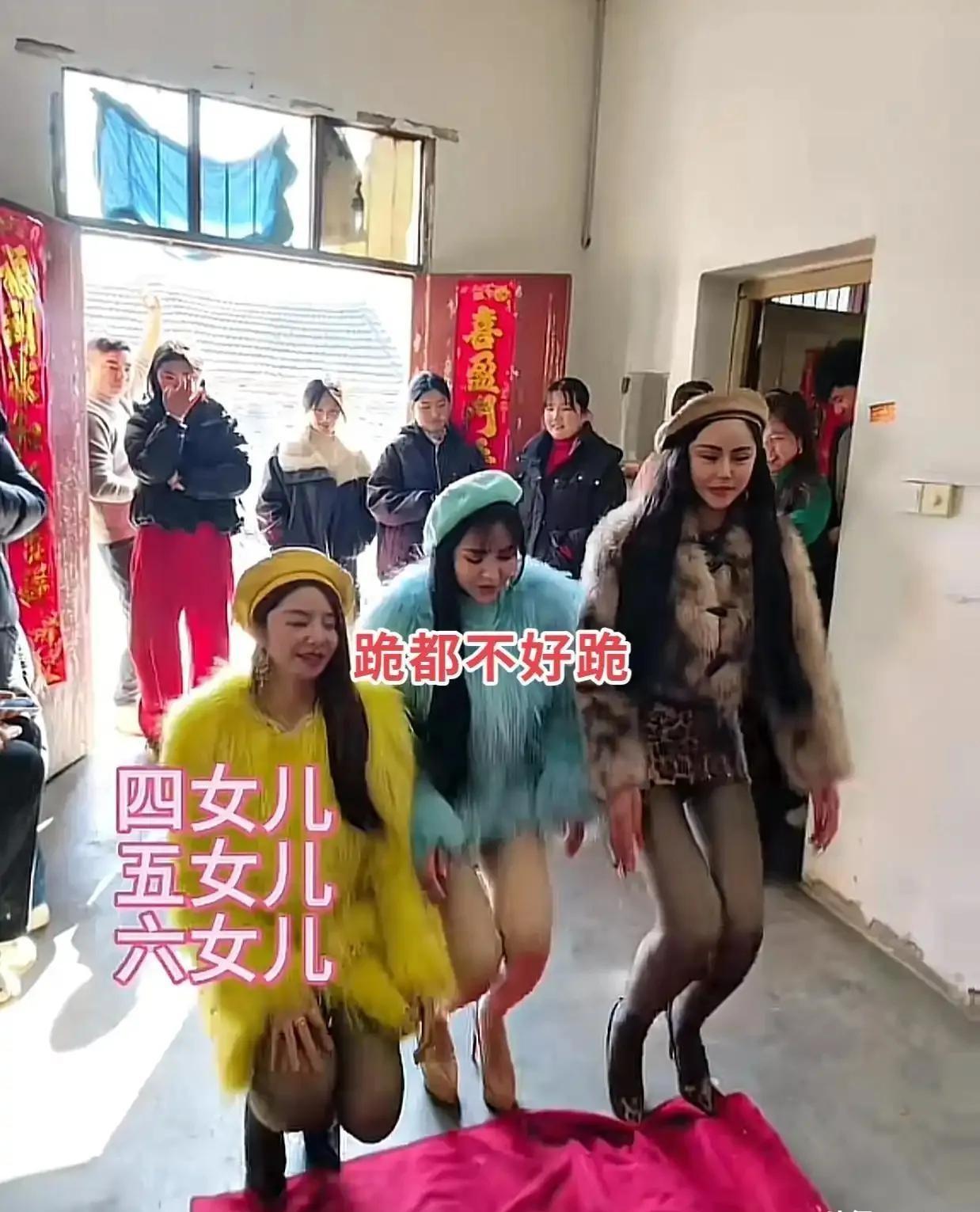 豹纹外套跪在祠堂砖地上, 穿高跟鞋磕头算不敬? 三姐妹没说话。 今年大年初四,安徽一个村里,三个在城里打工的姐姐回家拜年。 她们穿着最近拼多多上挺火的豹纹皮草外套,配短裙黑丝高跟鞋,在堂屋地板上磕头。 高跟鞋卡住了,裙摆往上滑了一点,没人喊停,爸妈就坐在边上喝茶。 视频是家里人随手拍的,传到网上后,一堆人说“这哪像拜年”,可没人提她们大冬天坐六小时绿皮车回来,也没人提磕完头就换拖鞋去厨房包饺子。 大伯没拦,亲戚没笑,连出嫁的妹妹都穿棉袄坐角落没吭声。 她们朋友圈发过:“被姐姐说太时髦,但我不想换。” 网上吵得凶的,基本没去过那村子。 有人打标签说“安徽祭祖”,其实那家祠堂门框上还贴着去年的褪色福字,香灰积在旧蒲团边。 她们跪下去的时候,腰是弯的,手是稳的,额头碰地那一声,比手机外放的争论响多了。 穿豹纹,跪得直,香没断。