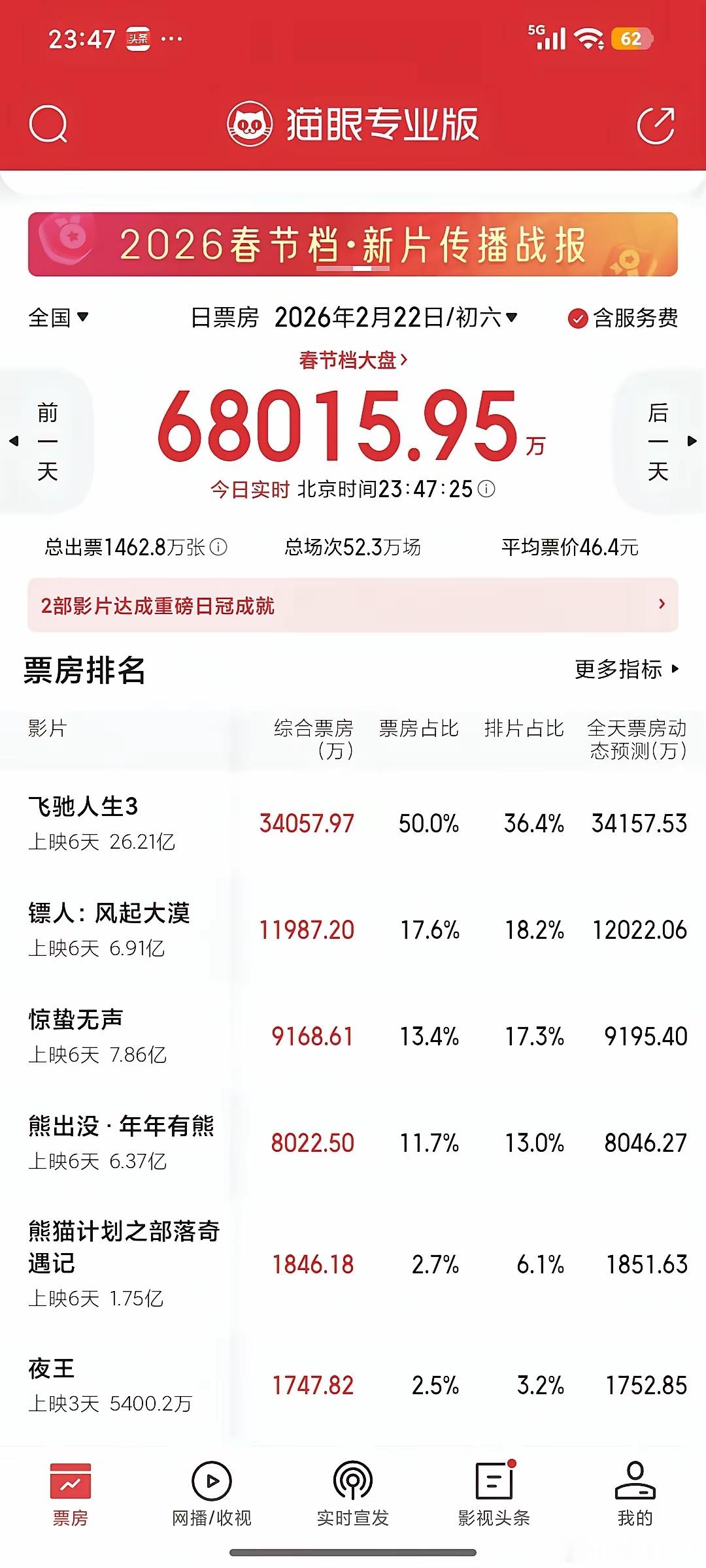 镖人电影又又又逆袭逆跌了上了1.2亿超过惊蛰接近3000万其他都是一天比一天少唯独镖人继续大逆袭我在想如果不是飞驰一开始就排片大幅领先这个春节档飞驰票房搞不过镖人镖人加油李云霄、陈丽君加油京哥加油一定要有第二部啊!