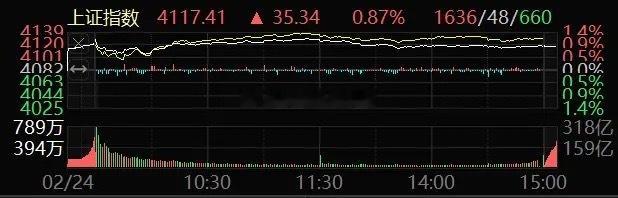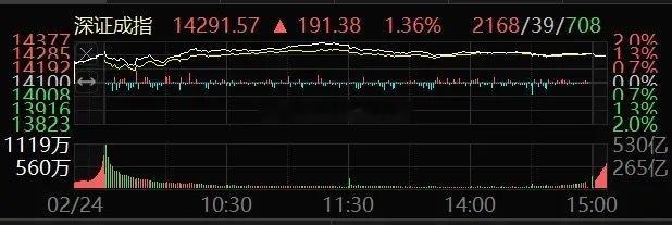 股市收盘点评【资源股领涨,马年迎来开门红】周二大盘高开高走,截至收盘,沪指涨0.87%,深成指涨1.36%,创业板指涨0.99%;两市成交2.2万亿,较上一交易日放量2194亿;盘面上,资源品种领涨,油气、培育钻石、化工、贵金属、磷化工涨幅居前;影视院线、AI应用、短剧游戏概念跌幅居前;连扳股方面,ST金鸿(000669)+*ST万方(000638)并列5连扳,位列连扳股首位;美邦股份(605033)+豫能控股(001896)并列4连扳;ST京蓝(000711)+汉缆股份(002498)并列3连扳;2连板个股6只;