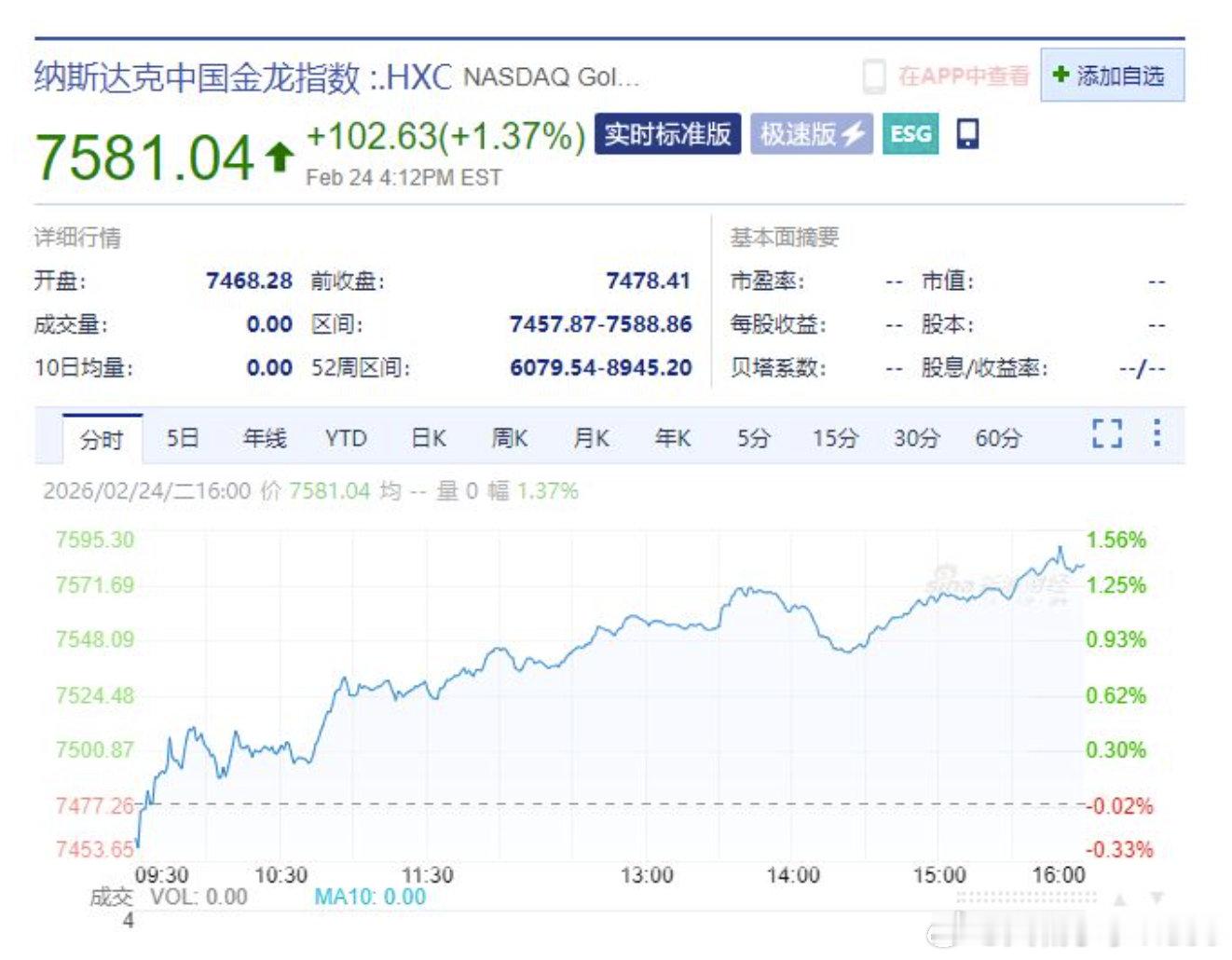 【中国金龙指数大涨1.37%苹果市值一夜增超6000亿】当地时间2月24日,美股三大指数集体收涨,纳指涨1.04%,标普500指数涨0.77%,道指涨0.76%。
