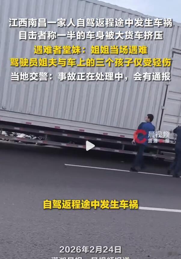 身为老司机,看到这种事真的是非常揪心,但是事情已经发生了。还是给大家多提醒一下,驾驶中一些需要注意的细节:1、不要跟大车并排,超车一定要果断;2、不要长时间跟随大车,要保持一段距离;3、如果堵车时在大车后面,记得把方向打左一圈左右,万一后车产生追尾,我们的车身会向左前方走,避免被怼到大车下面;4、多观察内外后视镜,以防后面有大车失控接近;5、其他的,大家也补充一下!江西一家人自驾返程出车祸1死4伤