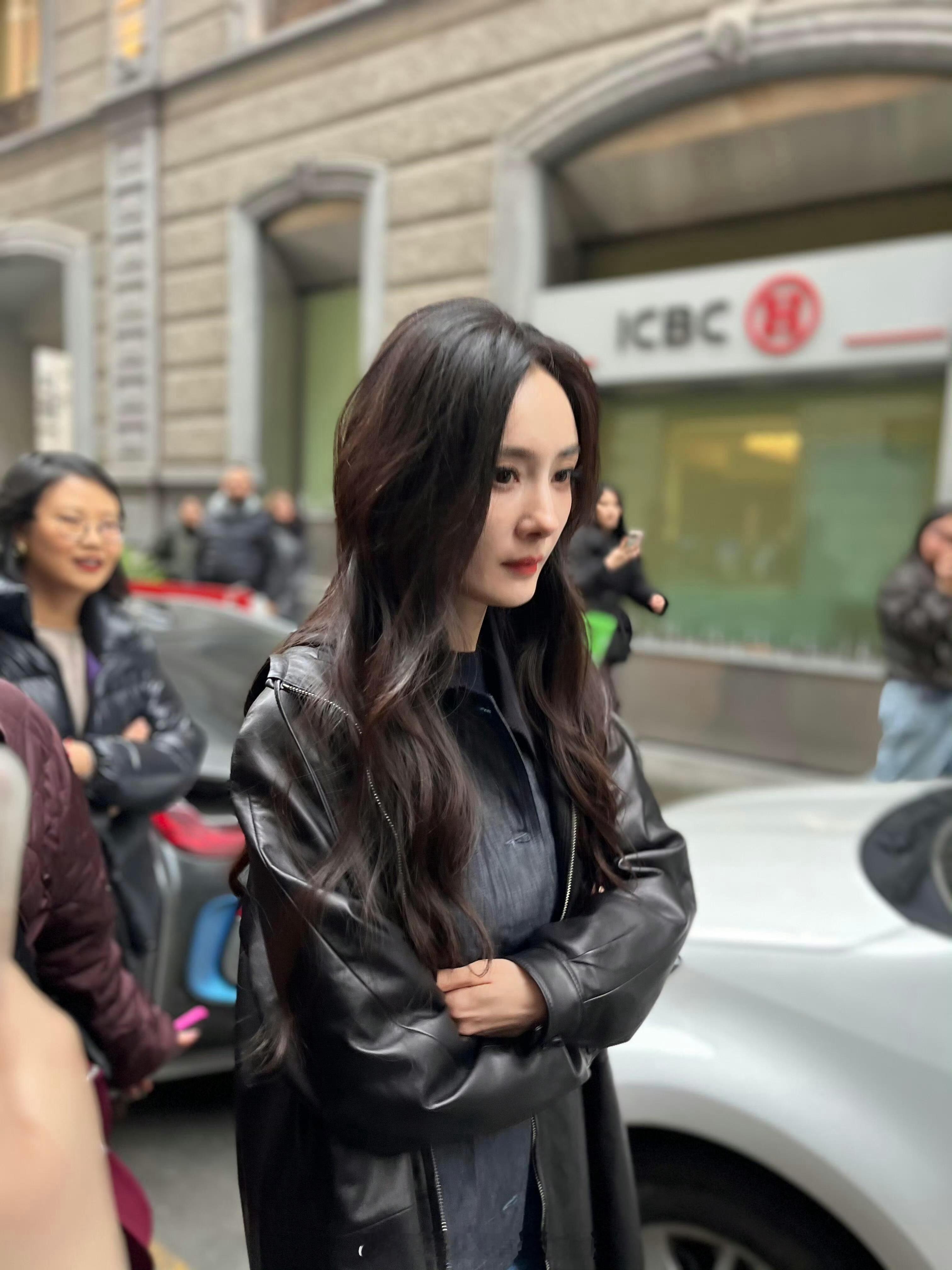 杨幂prada米兰探店生图路透好有冲击力的美貌,绝美期待幂明天prada看秀Pr