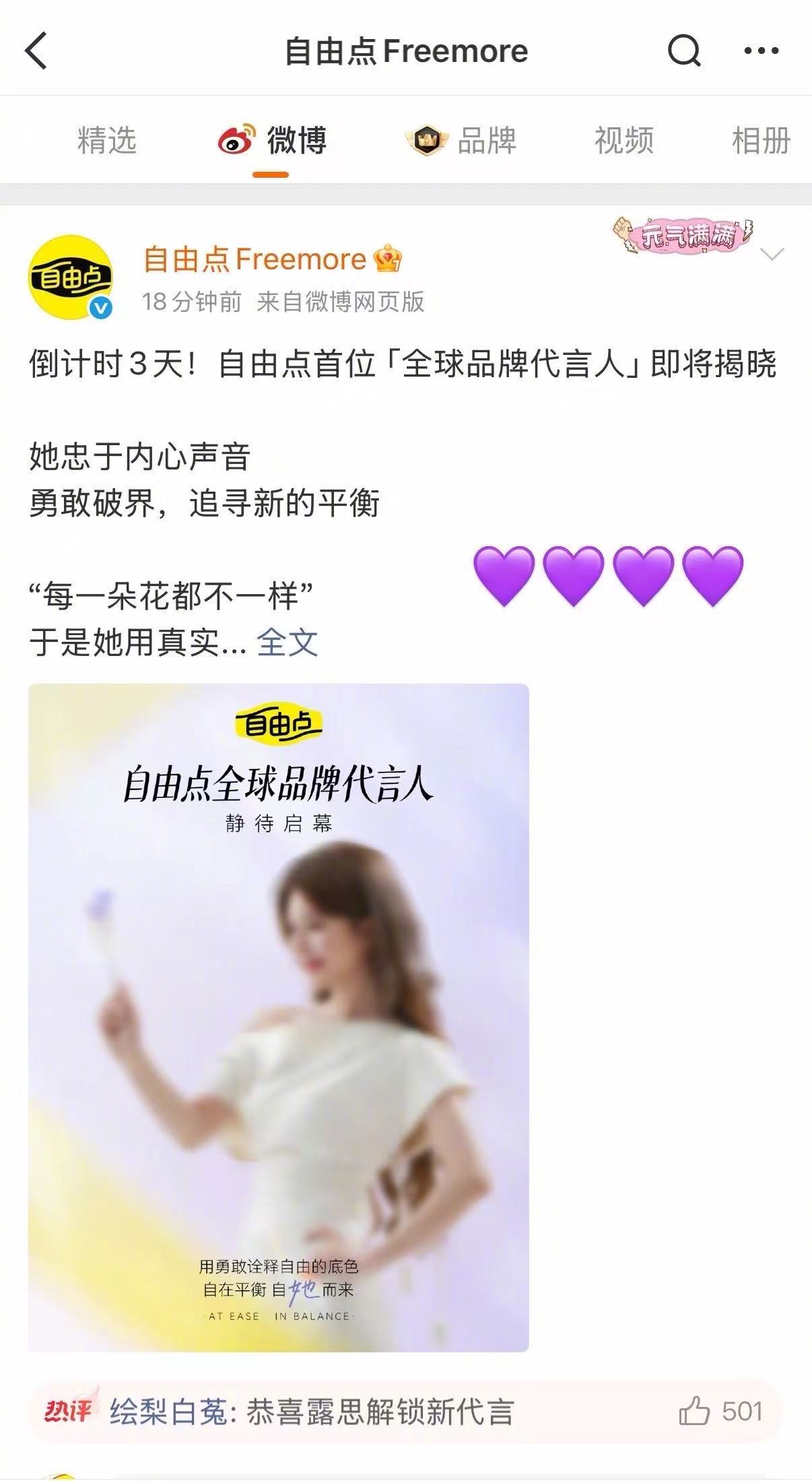 温柔又有力量的侧影,这不就是我们露思本露吗?!“用勇敢诠释自由的底色,自在平衡自她而来”,这文案简直是为露思量身定做的!自由点你简直不要太会写!!坐等2月28日11:09 官宣,已经开始期待自由点的绝美小卡啦~答应我把物料都给我放出来赵露思自由点赵露思自由点品牌全球代言人