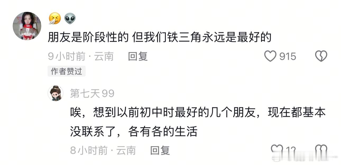是朋友更是自己选择的家人 岁月有情时里的铁三角让我相信:好的朋友就是自己选的家人!东化厂三小只一起长大,互相扶持,这种没有血缘却胜似亲人的关系,才是友情最美好的模样——我永远是你最坚实的后盾!