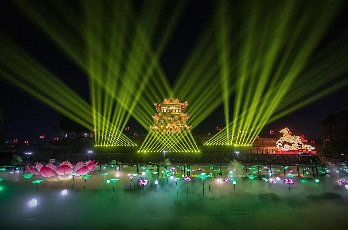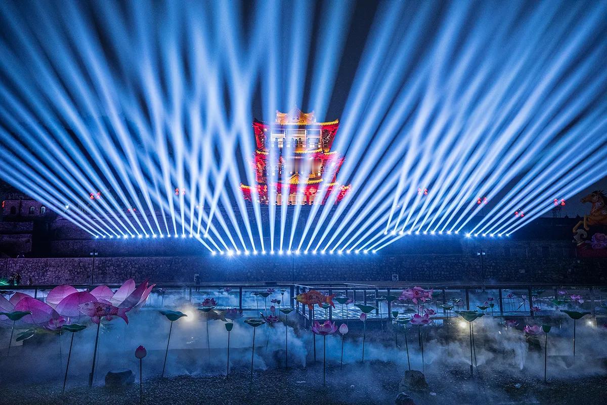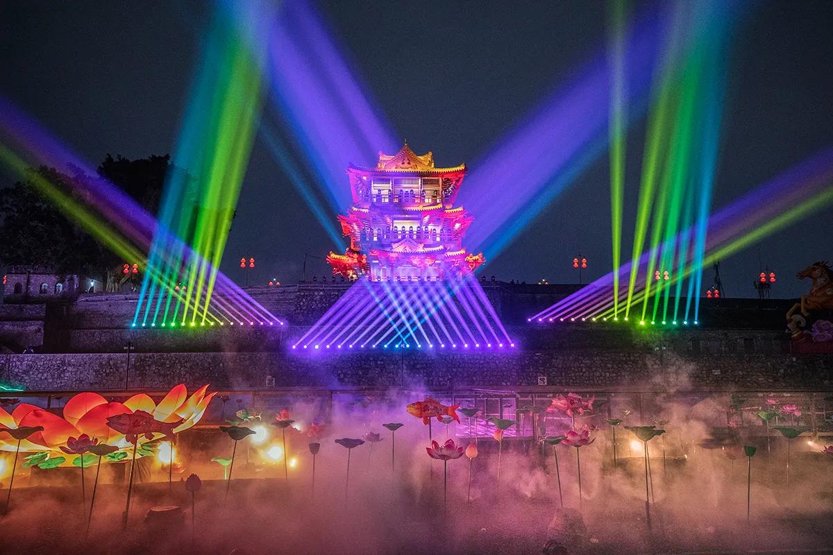从2月11日起持续至2月底,每日18:00-22:00,广东省肇庆市府城遗址公(丽谯楼、古城墙都有6场3D光影秀。