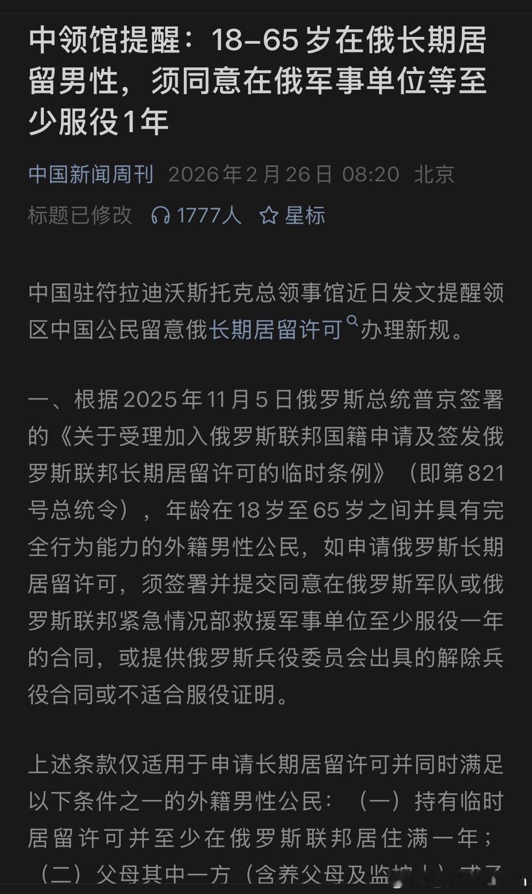 俄罗斯这个做法,我感觉主要有两个考量:第一是扩充兵源,第二是调控移民。