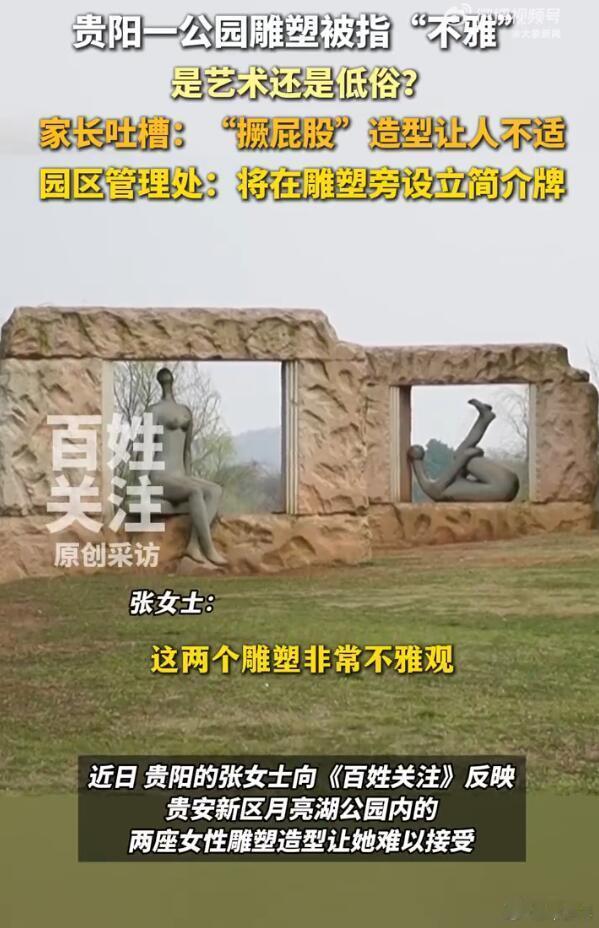 某些人是不是魔怔了?一个很普通的雕塑,最多就是有些女性婀娜身材,或者展现躯体美好的造型,就是“不雅”了?只能说,我们还是太缺乏美学教育,很多人根本不明白什么是对人体的刻画,思想还停留在小脚老太太时代,又土,又刻薄,又粗陋。看看欧洲文艺复兴时期的很多雕塑与绘画,着重描写的就是人体的美好。要是套用现在一些人的想法,维纳斯、大卫岂不是都该穿上大棉袄?贵阳一公园两座雕塑被指不雅公园管理处回应雕塑被指不雅