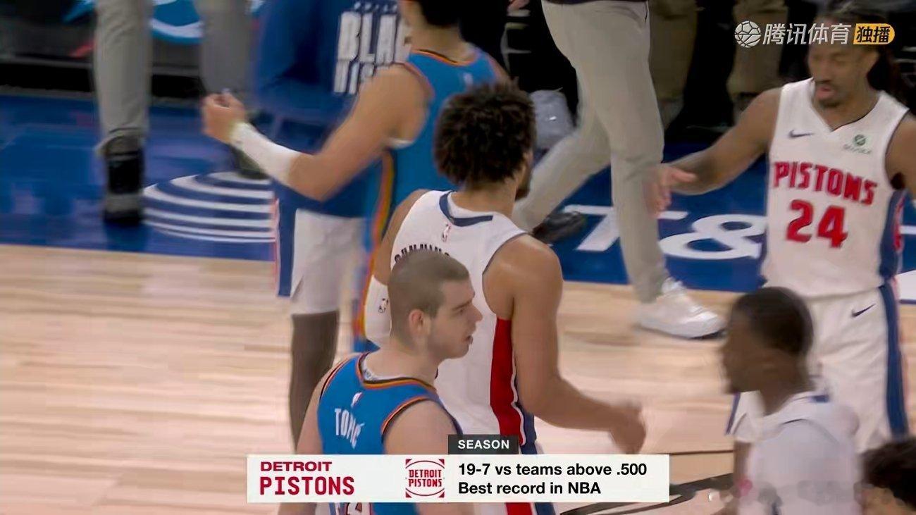 东西部榜首大战,活塞主场124-116力克雷霆,登顶联盟第1!