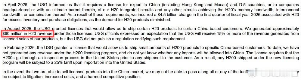 英伟达:2026年2月,美国政府批准了一项许可,允许我们向特定的中国客户运送少量H200产品。截至目前,我们还没有在H200许可项目下产生任何收入,也不知道是否会有任何进口被允许进入中国。特定客户是谁???🌹