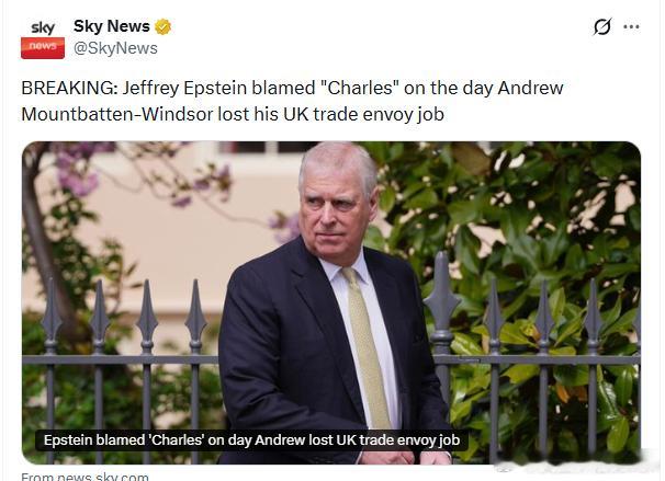 查尔斯三世国王 【news】爱泼斯坦将安德鲁失去英国贸易特使职位的责任归咎于“查尔斯”
