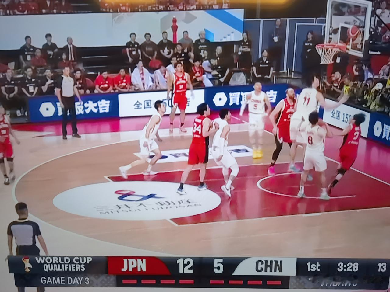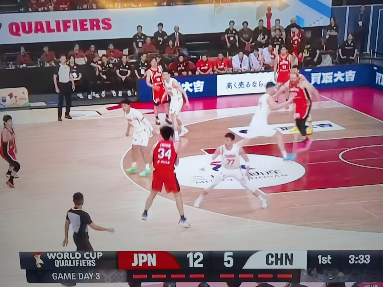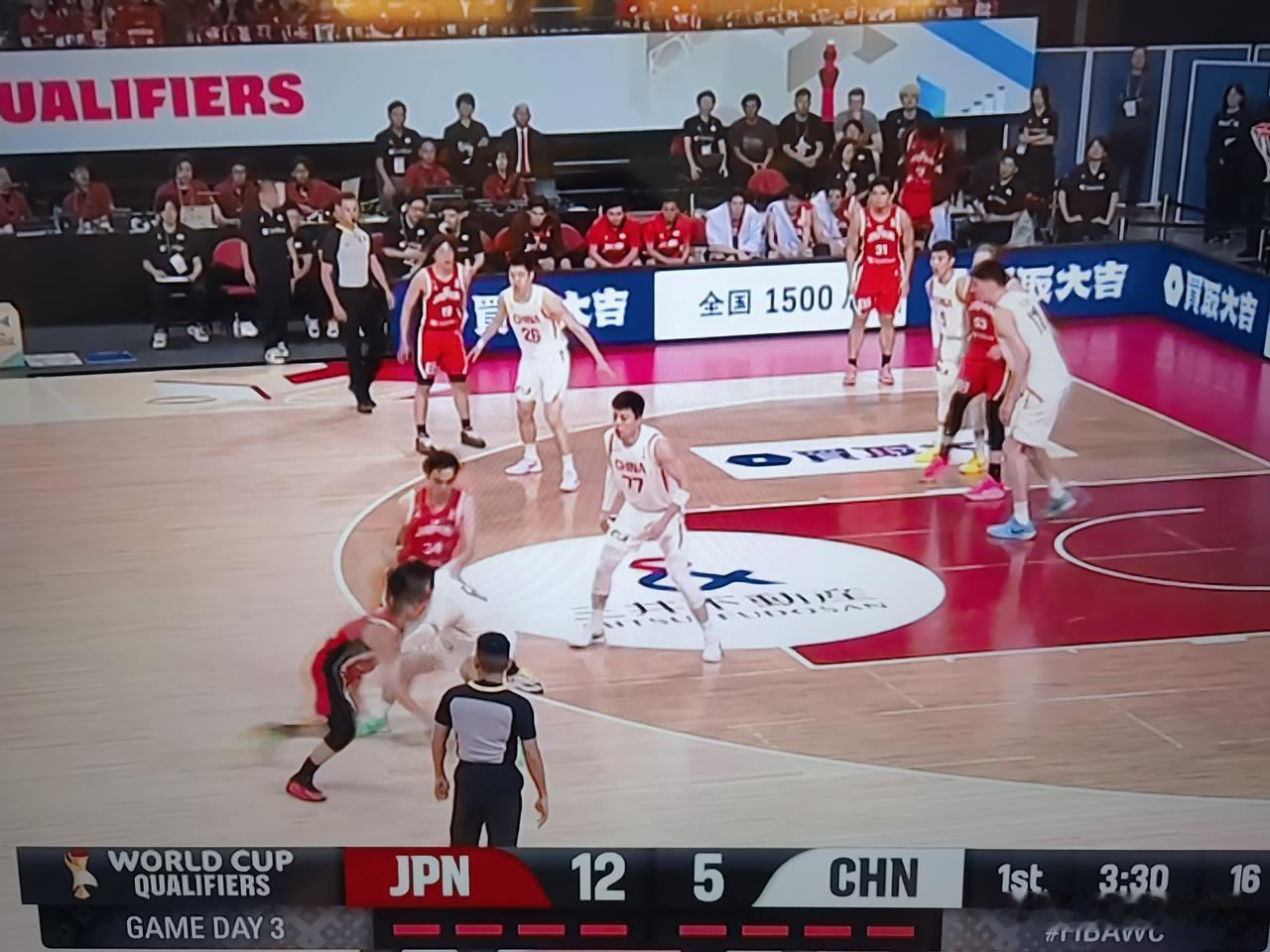 第一节快要结束了,中国男篮仅得5分!国际篮联世界杯亚洲区预选赛,中国男篮客场挑战日本男篮,先发5人来看,没有达到效果!第一节还剩三分钟的时候,日本男篮14:5领先中国男篮!篮筐仿佛加上了网子,怎么投也进不了!这场比赛不好打了!余家豪,赵瑞,廖三宁,胡金秋,。春节期间练的没有效果啊!廖三宁真的不行!