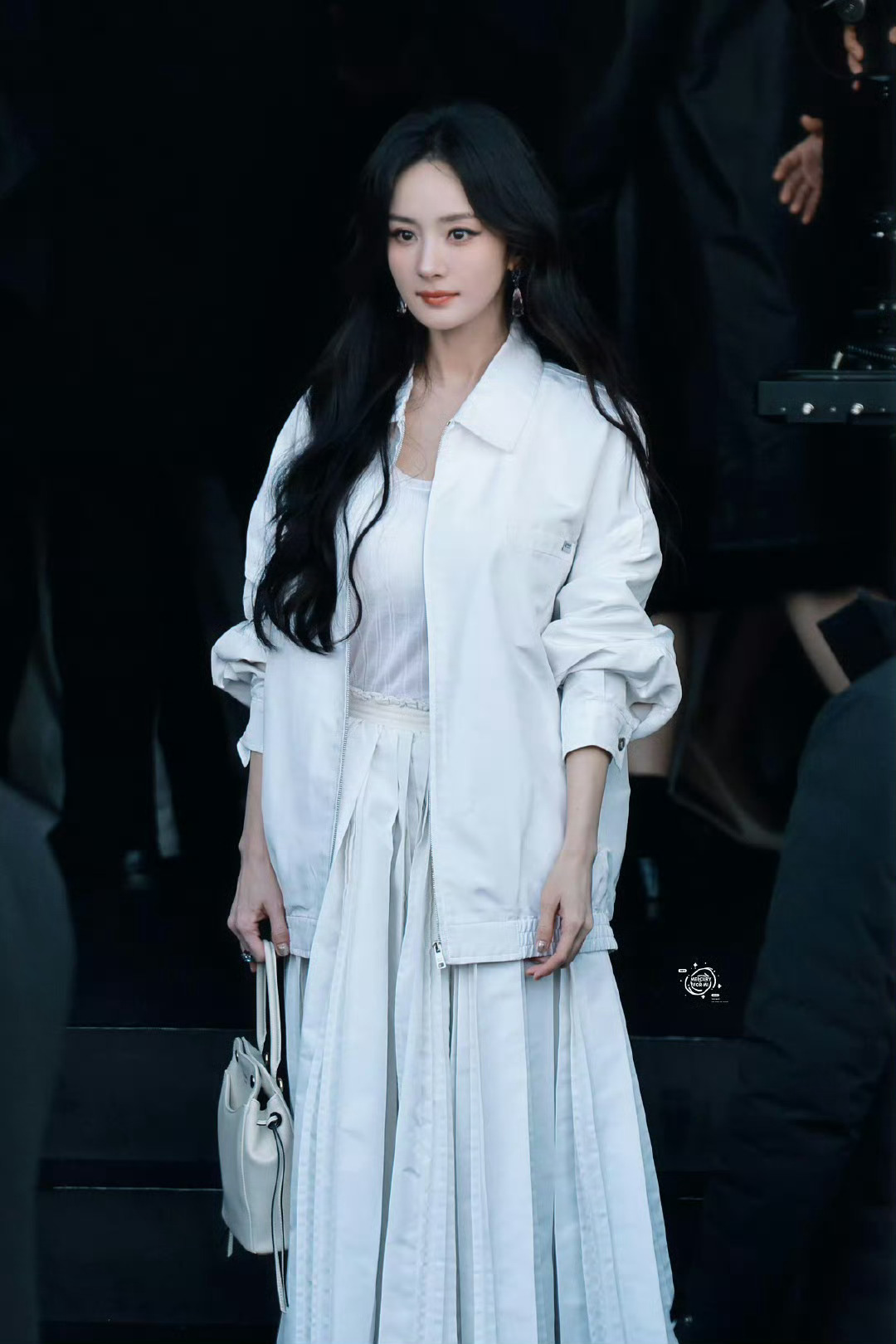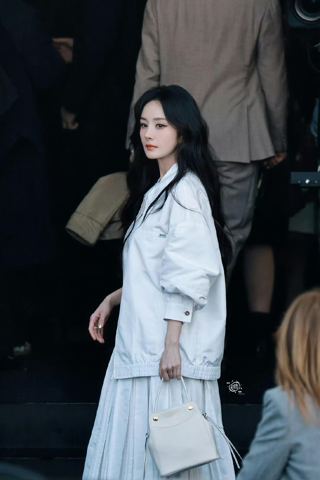 杨幂米兰看秀出场,身穿白色系穿搭,幂姐美的像白月光出场!