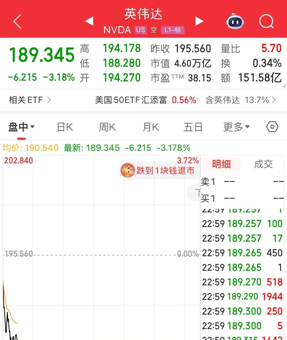 重磅消息英伟达今晚低开低走,放量大跌超3%A股明天会跟跌吗:业绩超预期的英伟达今天竟然低开低走,放量暴跌3%,最可怕的是高位放量下跌,半小时151亿美元,相当于港股一天的成交量了。高位放量大跌,就看今晚英伟达是否能稳住了!但有卖就有买,就看今晚多头和空头谁更厉害了:既分高下,也决生死!明天A股会跟跌吗?大涨没跟,大跌跟那就没意思了。大概率A股明天也不会很着大跌。目前A50走势很稳定。苹果新品来了