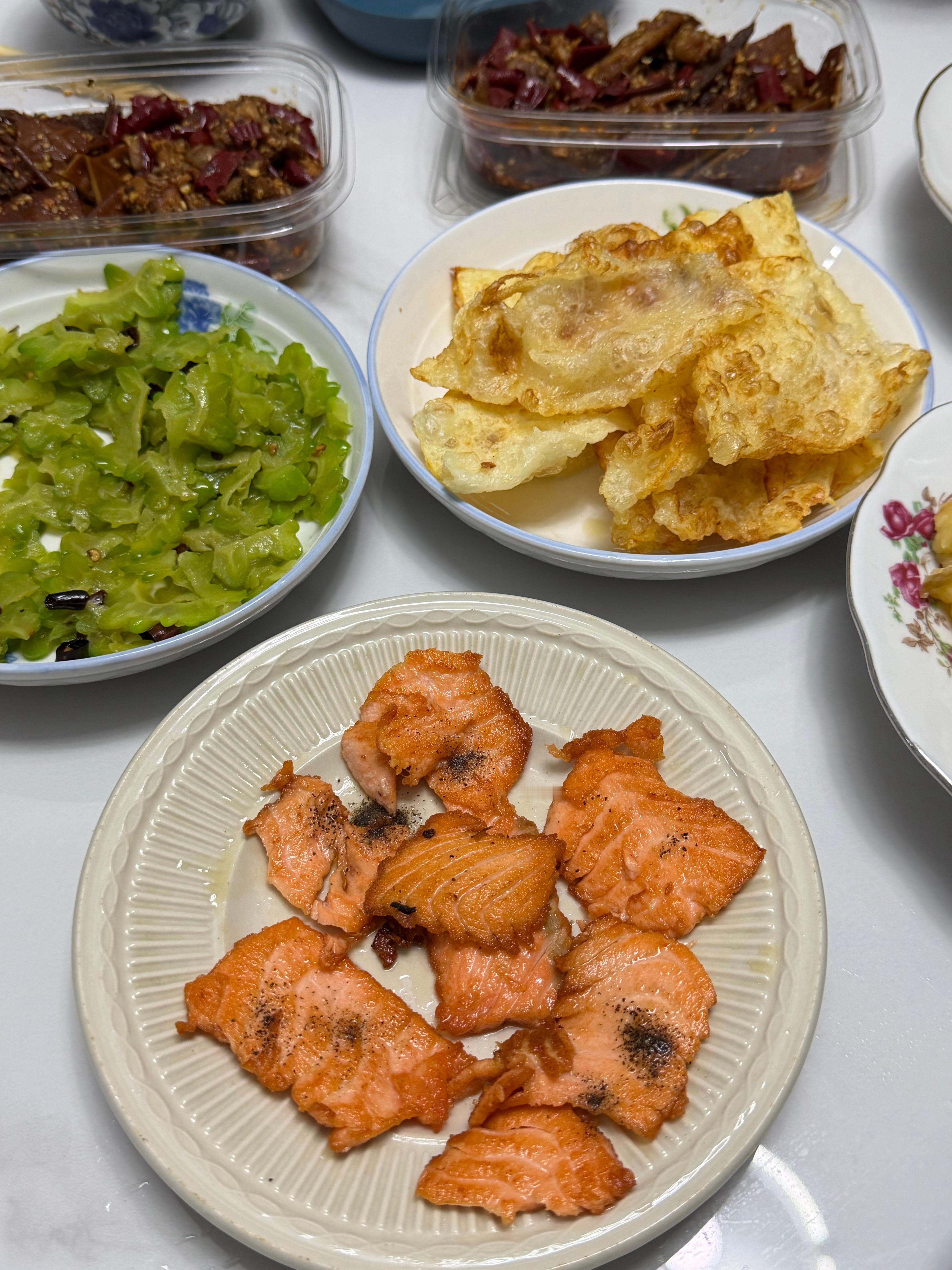 晚饭回家吃 老爸给我煎了三文鱼🍣对面的冷吃好好吃