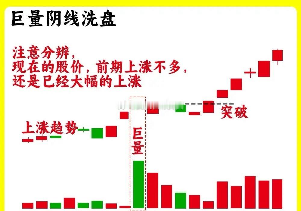 注意了!股价在上涨趋势的里,主力洗盘往往会用这个两种洗盘手法,一种是强势洗盘,另一种是连续阴跌。看懂他们的逻辑,就会明白主力洗盘的区别,当然他们的洗盘周期也是不同的。如果你还不分辨主力洗盘还是出货,那这期内容就一定要认真看完还是老规矩,点赞收藏或评论六六六支持一下,女侠每天分享炒股干货,以免以后想温习找不到了强势洗盘往往在形态就是出现下跌速度快,幅度比较大,而且成交量会明显放大,下跌成交量出现倍量或巨量,等企稳反弹,快速缩量。在K线上,就会出现长上下影线,而且时间周期比较短,1到3天左右。像我们常见的巨量阴线洗盘就是这样。股价在上涨趋势里,连续的阳线过后,出现巨量阴线的,这是主力故意打压股价形成,随后股价开始缩量,洗盘时间越短说明主力越强势,所以这样的下跌并不是主力出货,而是洗盘连阴递缩洗盘这主力洗盘,往往都是小阴线,下跌幅度比较小,当然这种洗盘周期要比强势洗盘时间要长,往往会大于3天以上。洗盘过程里,成交量逐步缩量,整个洗盘很磨人。主力是用时间去换取空间,清洗市场的不坚定筹码。成交量越小,说明抛压就越小,这种洗盘手法,在上涨趋势初期会出现,也会在主力底部吸筹末期也会出现。整体洗盘比较温和和强势洗盘的区别还是很大的,下跌幅度和周期都不一样好了!以上就是主力洗盘的两种快慢洗盘。现在看懂了吗?希望对大家有启发,也是最为基础的内容,一定吃透。