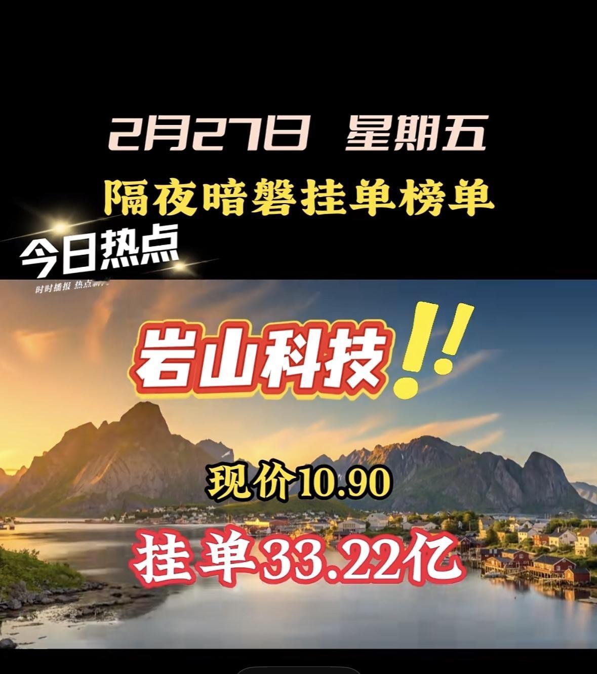 2.27暗盘隔夜挂单榜前八:航天动力36.14现价,23.35亿挂单! 暗盘交