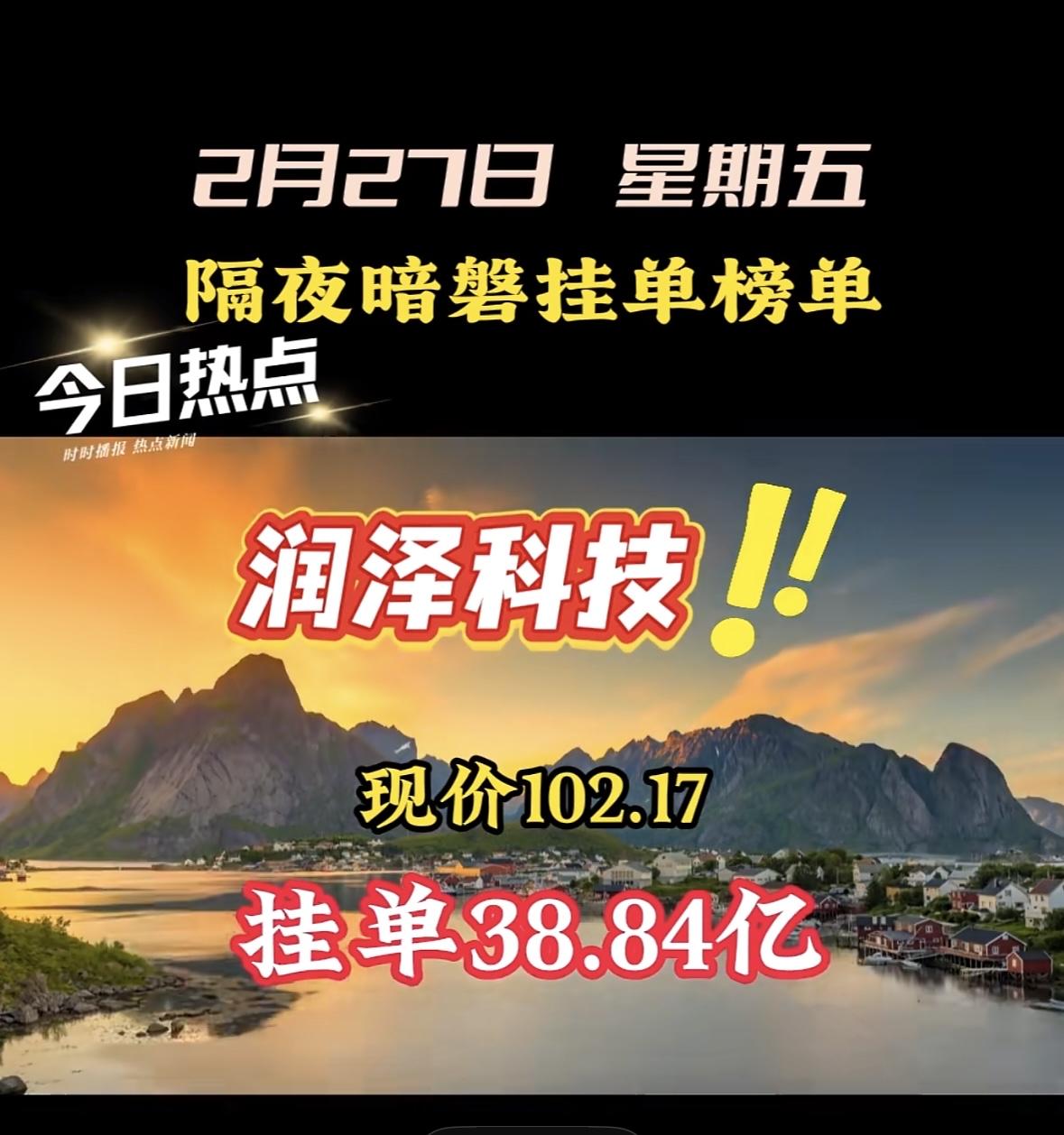 2月27日,星期五,暗票隔夜挂单,航天发展现价30.74,挂单70.69亿 暗
