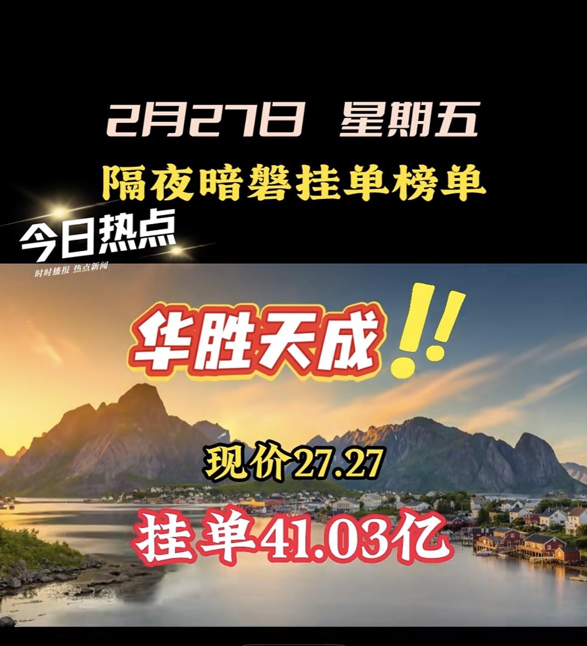 2月27日暗盘隔夜挂单前六,华胜成现价27.27,挂单37.22亿。 "协鑫暗
