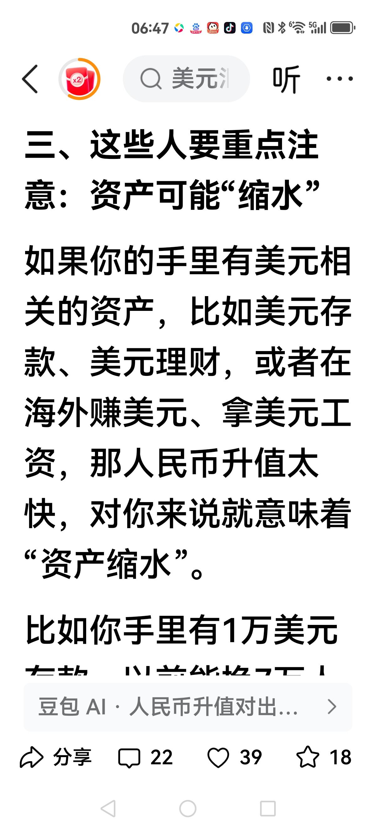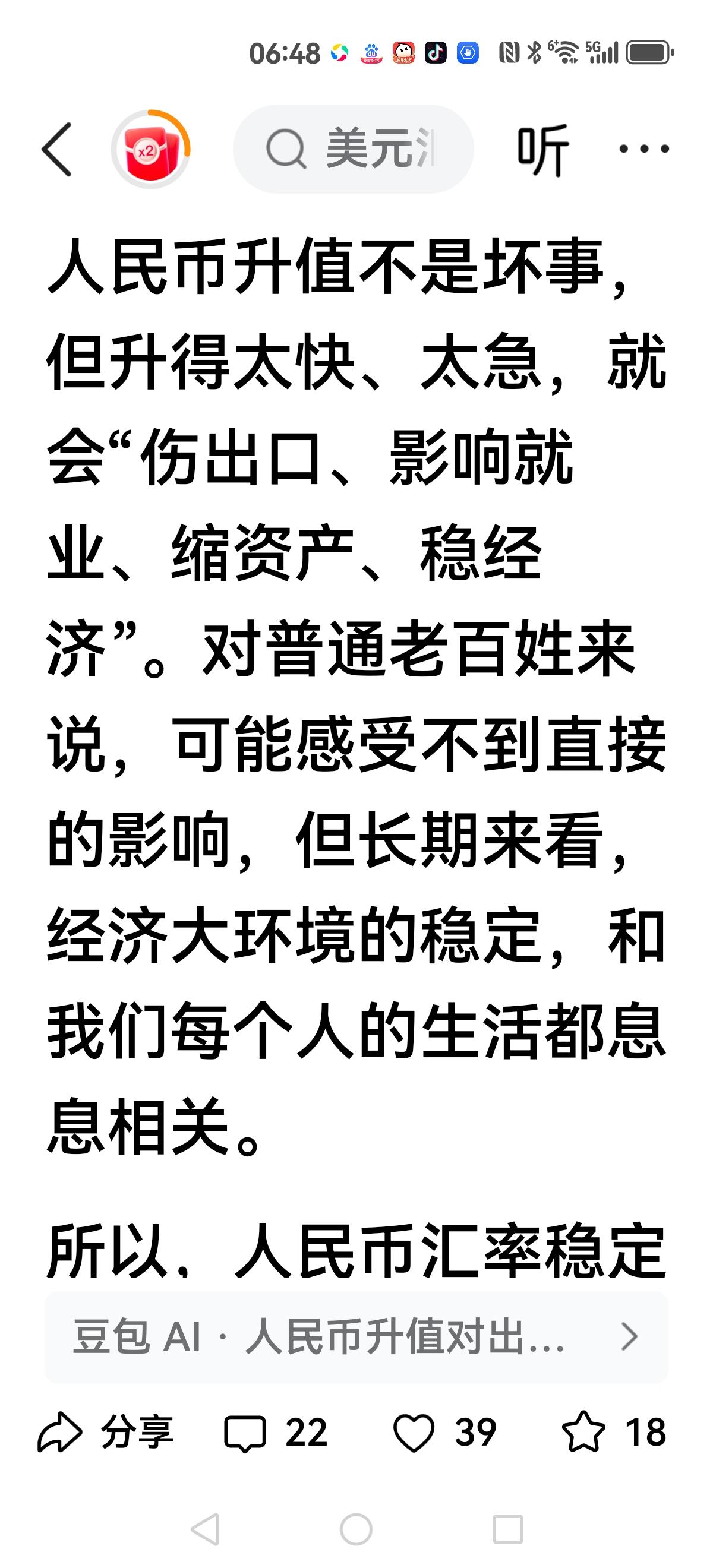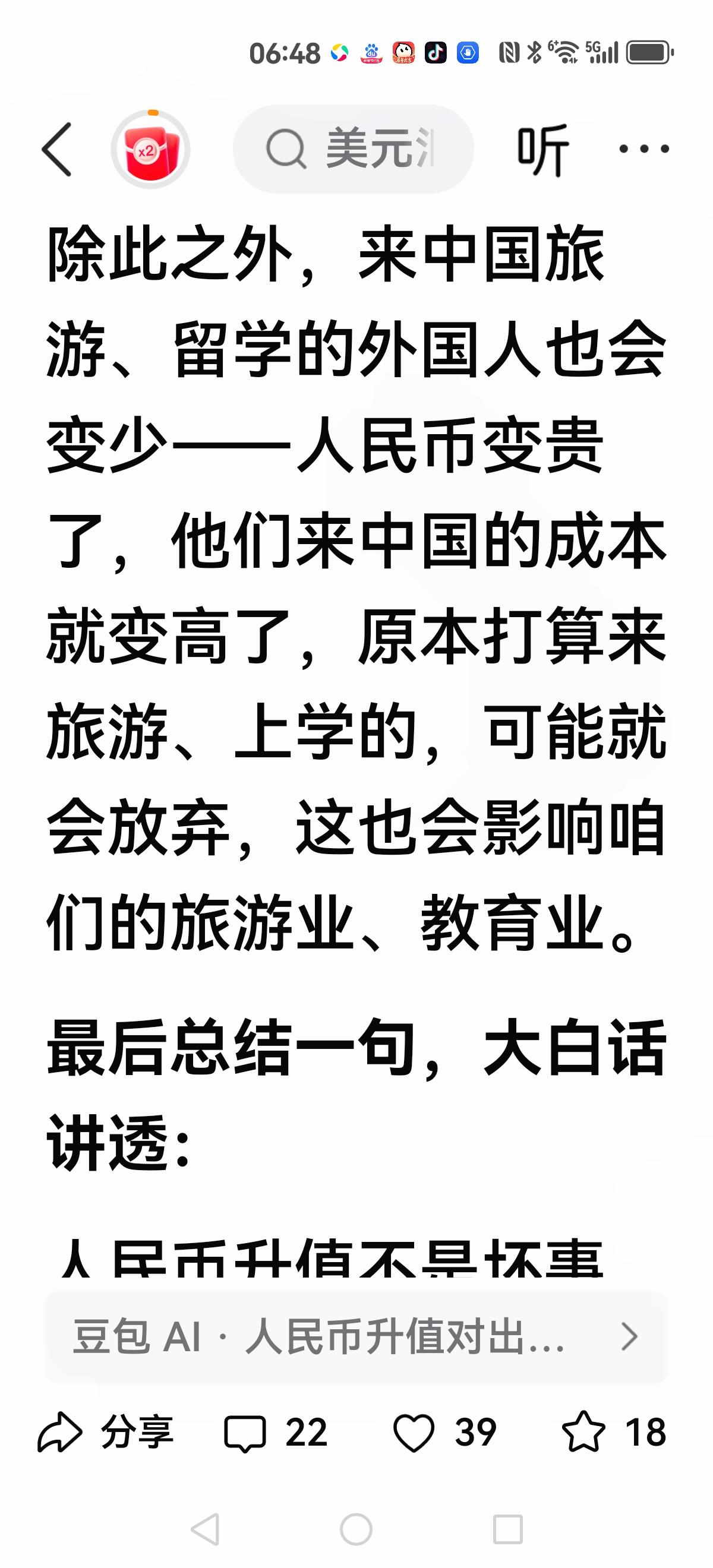 很多普通人都被忽悠瘸了,常理和基本规律都违背了,1房子就是商品,越便宜越好。2人民币升值就是好,本国货币在世界购买力强了。这两条都是基本常识,看看现在多少走路正常的人被忽悠瘸了。论人民币汇率升值到1:1的重要性,1咱不卷了,开始轻松富裕人生,闲钱炒炒股,股市飙升,2清北顶尖天才不再出国效力了,高科技产业要独霸世界,因为国内工资高了。3台湾省顺利回归,香港人老实了,因为咱们工资比他们高。 解释一下贬值利于出口的谬论和广场协定::日本靠进出口的差价维持生存的,尤其是高科技产业,比如花十美元进口原材料,成品卖50美元,利润40美元,广场协议后日元升值一倍,只需要5美元进口原材料,可是只能卖25美元,利润20美元,比以前亏一半利润。咱们进出口基本都是不相干行业,人民币升值翻倍后,购买力翻倍,以前花200亿,现在只需要花100亿,妥妥利润100亿。出口产品利润极低,但又是欧美必须品,又必须买一些,以前出口300亿,利润6亿,现在出口200亿,利润4亿,没有了贸易顺差又如何,妥妥的节约了100-2=98亿。