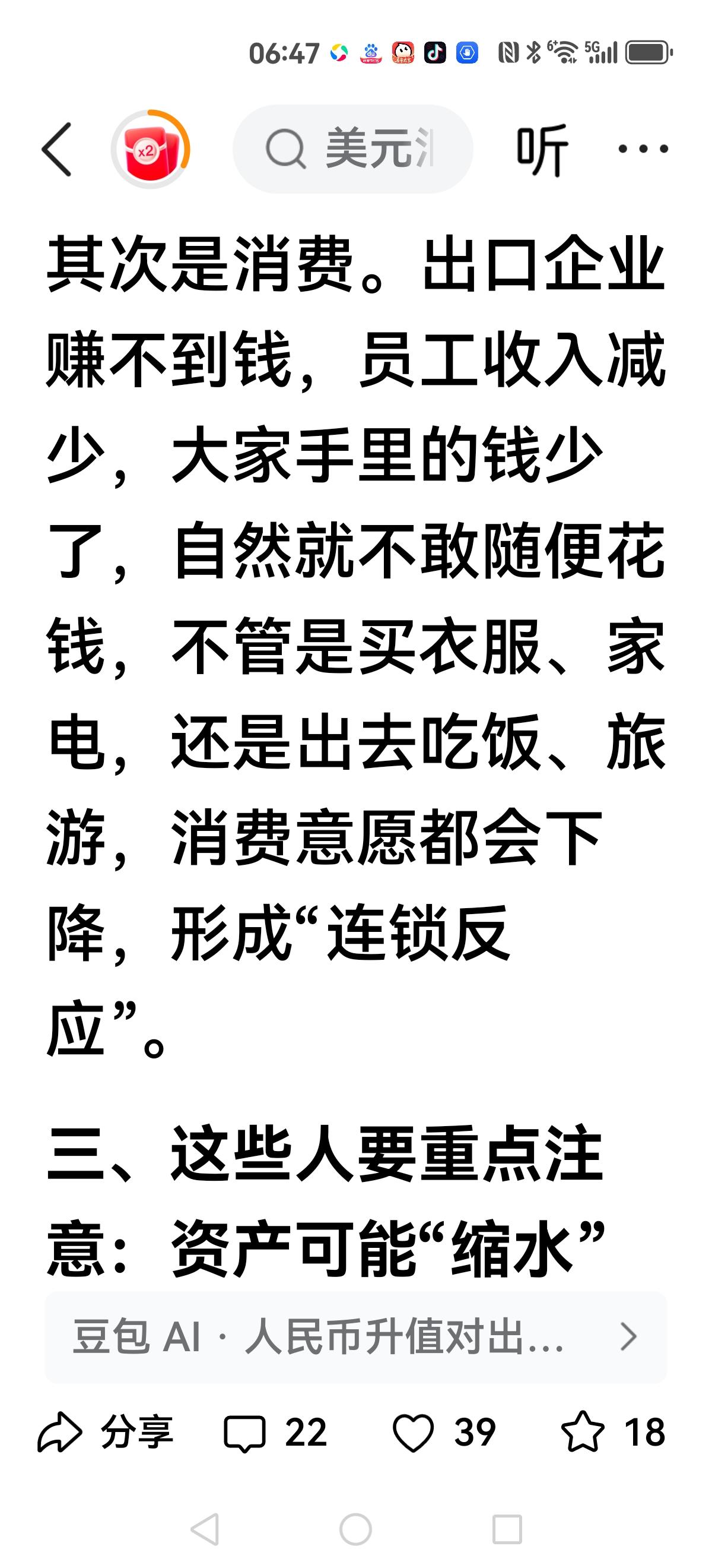 【人民币升值】 目前美国金融机构一致认为人民币被低估,还有百分之25升值空间。 升值并不是坏事,但升的太快必然会收到伤害。 这一轮升值来之汹汹,有人又谈到日本的广岛协议,所谓十分相似的经历。 所谓当年日元火速升值,导致失去三十年的后果。 而我们目前苗头也有点和日本相似,最受打击就是出口行业,即将普及到从事相关行业的就业大军。 间接影响消费,本来就十分脆弱的消费随着这一轮震荡又要下行。 房地产以及相关行业,本来就举步维艰,甚至相关行业的几位大佬自杀,足以看出威力。 如果出口行业受到伤害,那后果也是地震级别。 郎咸平分析外部势力就是让我们陷入通缩深渊,看到这里你就明白为什么封北哥,在鼓励通缩路上,北哥把油门踩到底了。