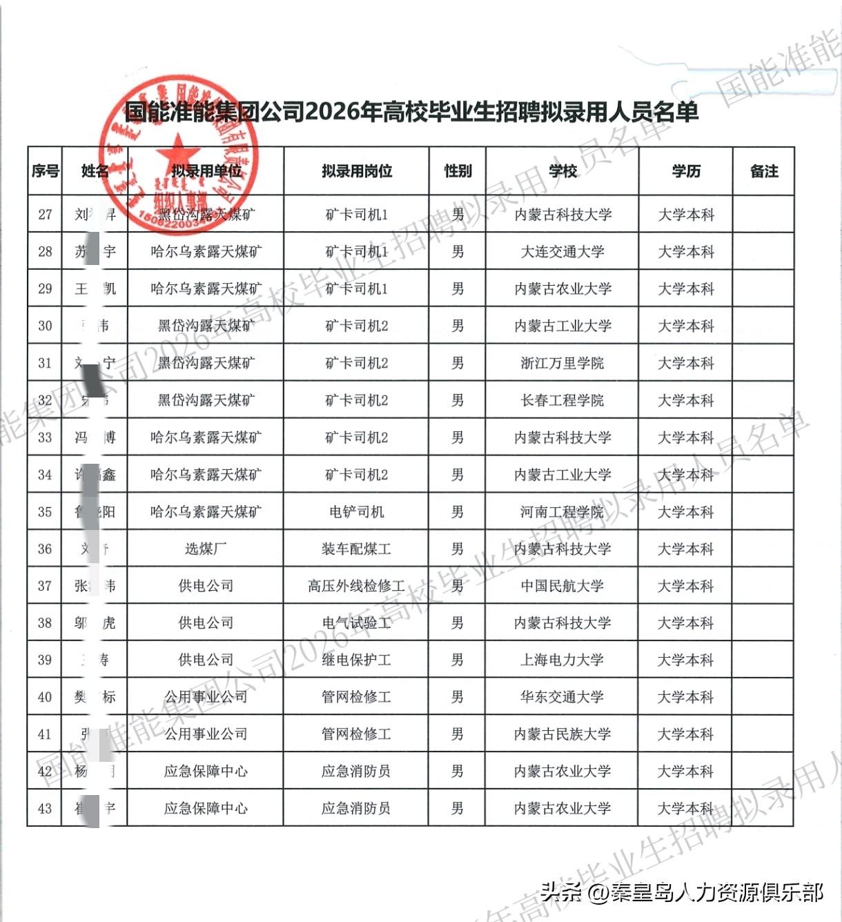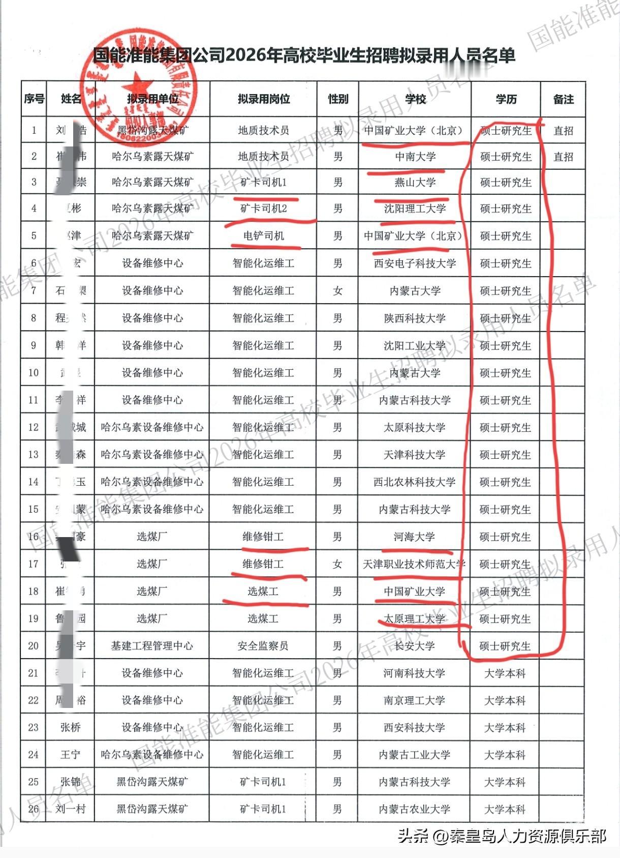 国能准能集团2026年的拟录用名单出来了,我仔细一看,名单里出现了好几个研究生,